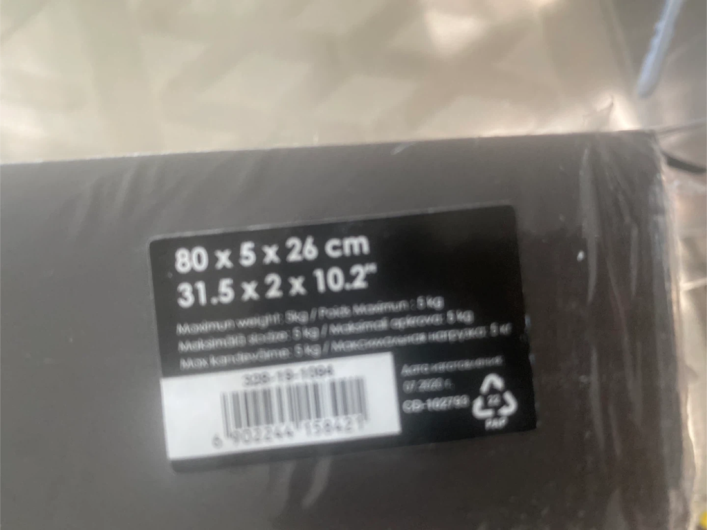 Dimensions are 80 x 5 x 26 cm, which translates to 31.5 x 2 x 10.2 inches.