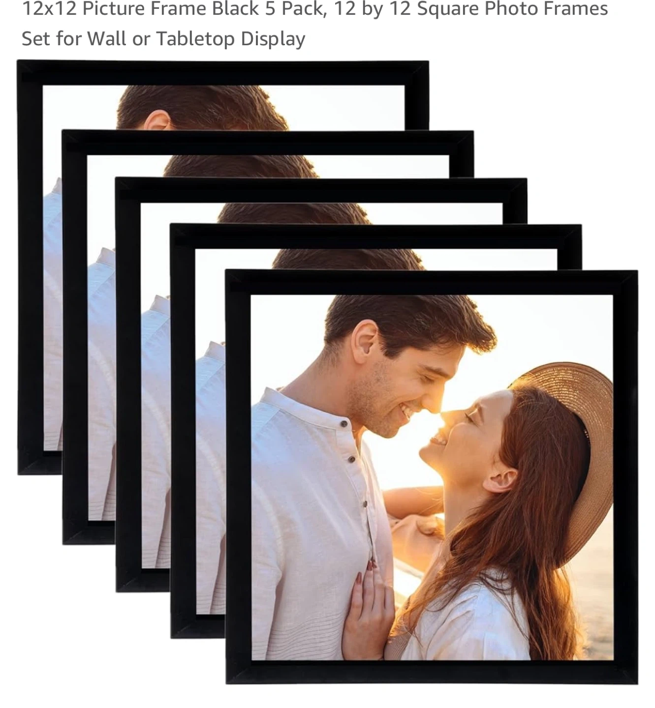 Selling a set of five 12x12 inch black picture frames! These square frames are perfect for displaying your favourite photos on the wall or tabletop
