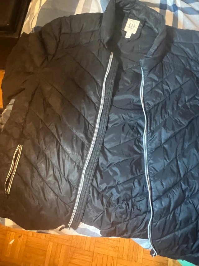 Selling a black puffer jacket from GAP. It's in great condition and perfect for the cooler weather. The zipper is in good working order. For Sale By: Owner