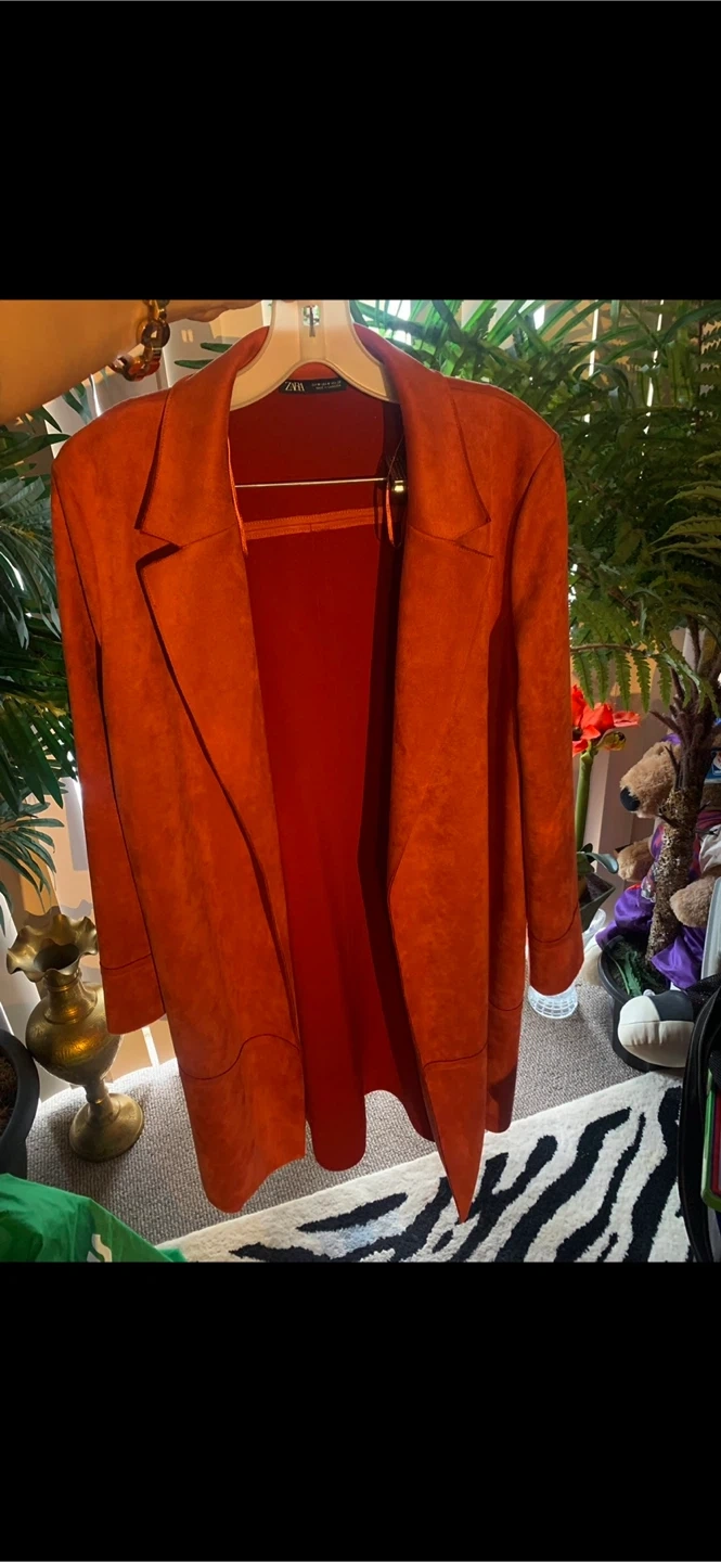 Selling a Zara blazer in a striking orange colour! It's in great condition and ready to add a pop of colour to your wardrobe. Perfect for layering or wearing on its own, this blazer is a stylish addition to any outfit