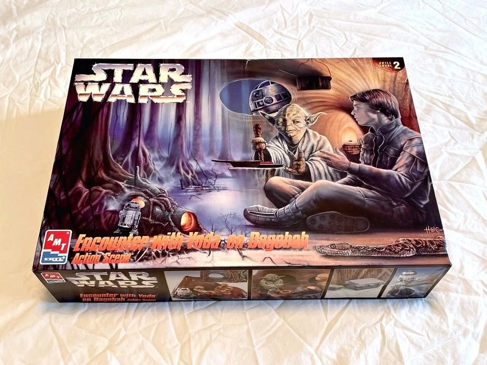 Relive the epic encounter between Luke Skywalker and Yoda with this AMT ERTL model kit from 1995. The scale is 1:32, and it includes Yoda, Luke Skywalker and R2-D2. This vintage kit is a must-have for any true Star Wars enthusiast, and offers a great opportunity to recreate and display the classic scene from The Empire Strikes Back.