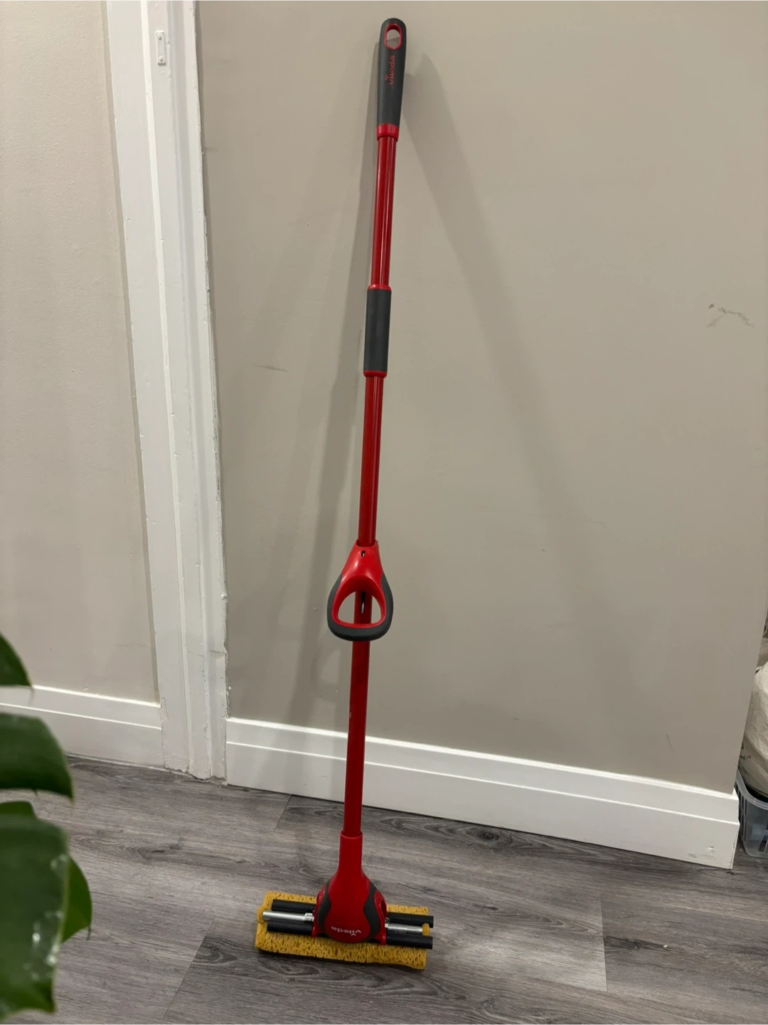 • EASY TO WRING: With an ergonomic soft grip handle and self-wringing mechanism, this lightweight mop keeps hands dry while wringing.