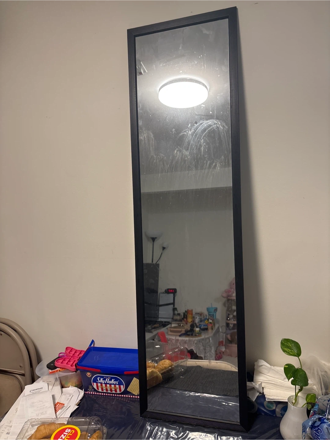 Selling a hometrends full length mirror in great condition! It's a sleek black colour and measures 14 inches wide by 50 inches high. Perfect for any room!