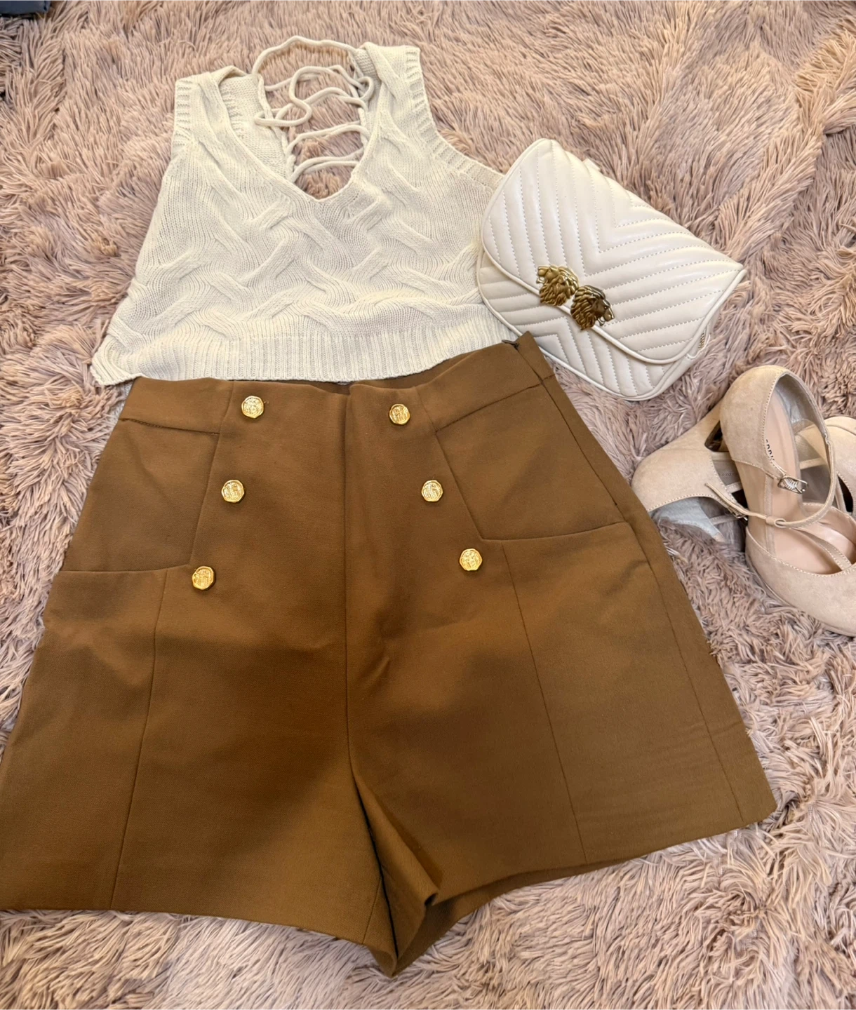 Cute Zara high-waisted shorts, size large. in a green-brown colour! Wore once. In great condition. Perfect for a stylish and comfortable look!