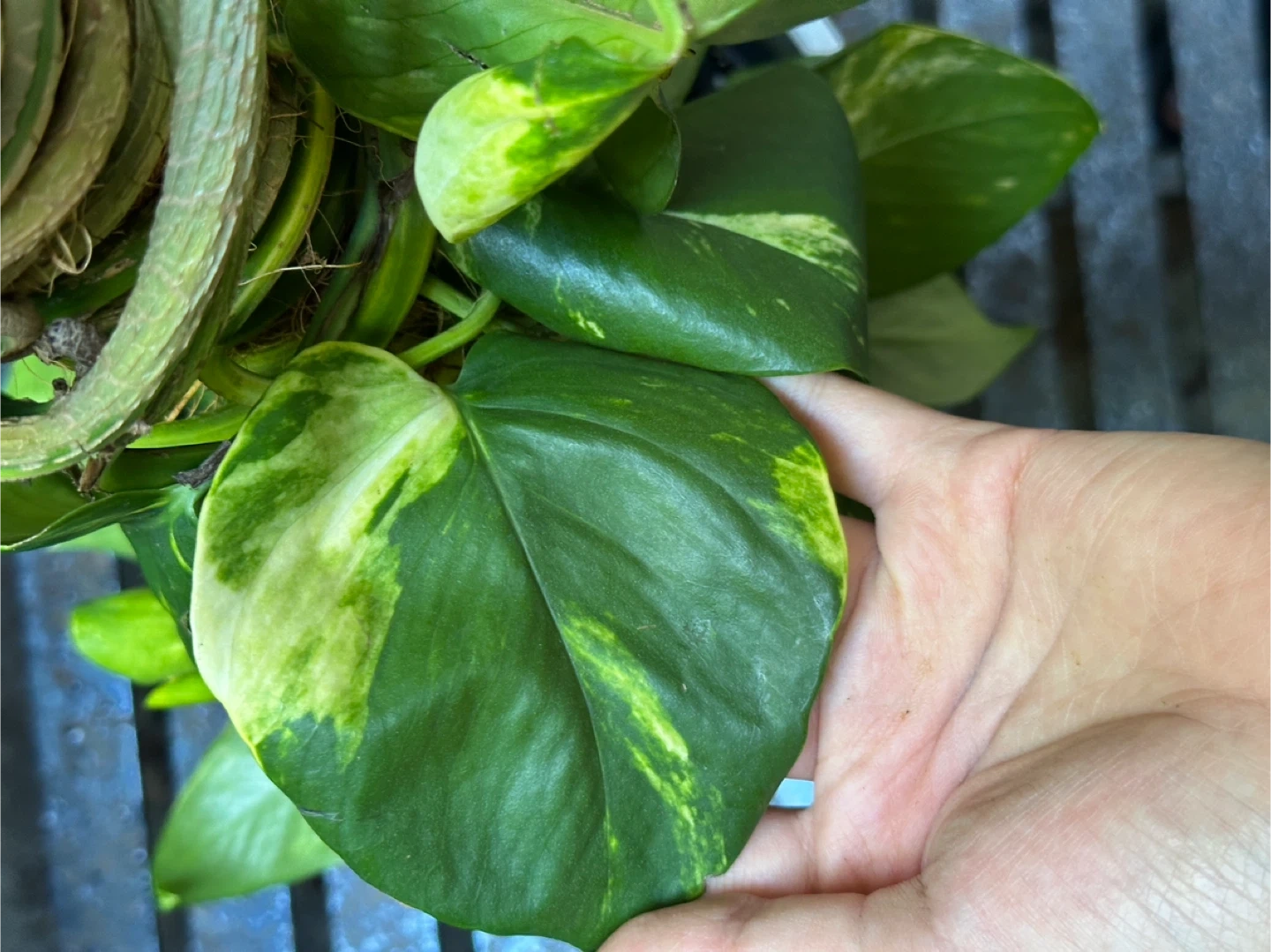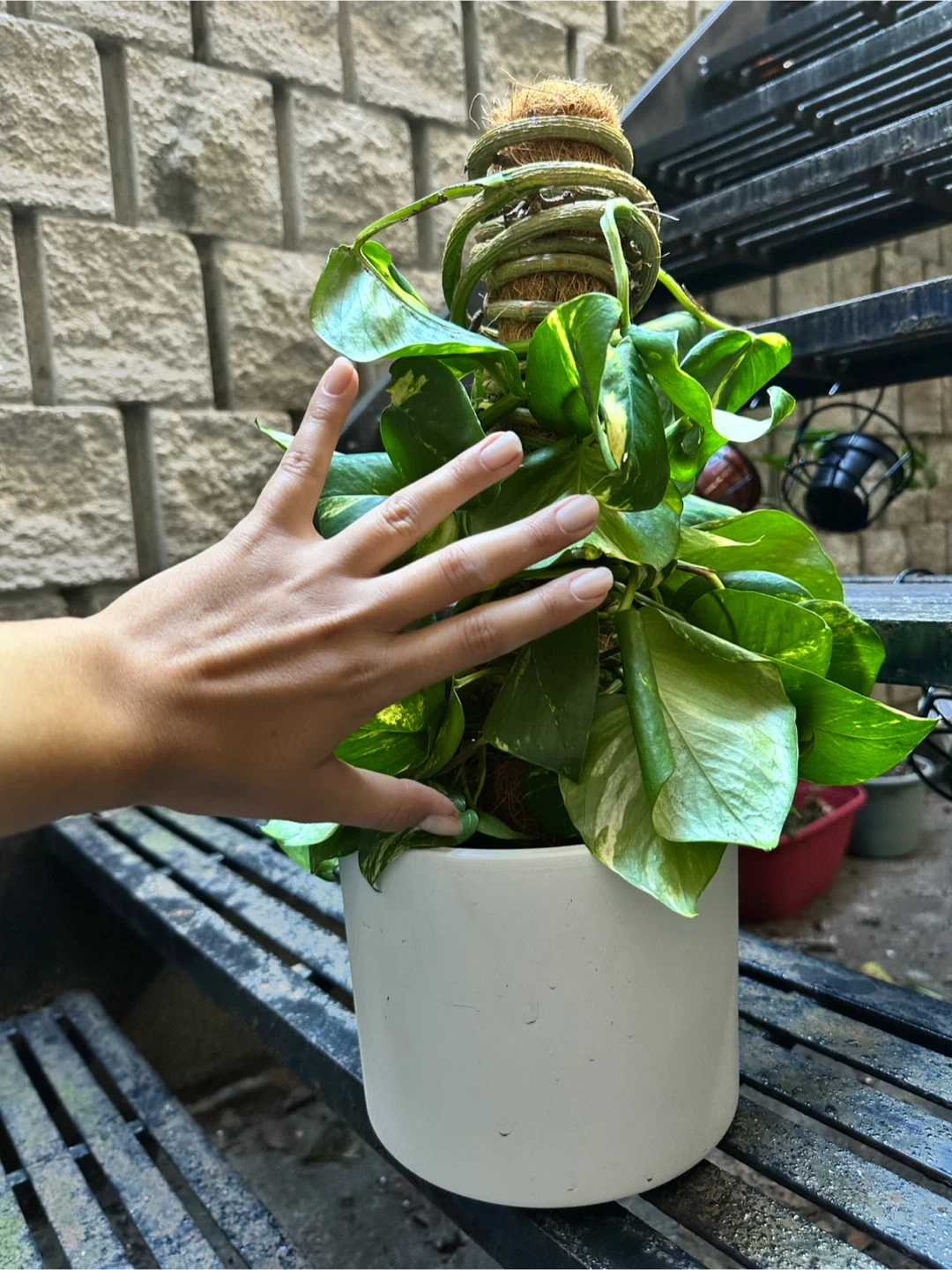 1000+Beautiful variegated mature pothos plant on a coco coir pole. Very long plant (over 30ft stem) with colorful large leaves. Add $5 for the decorative planter. All prices are flexible, feel free to make an offer or bundle for discounts! π