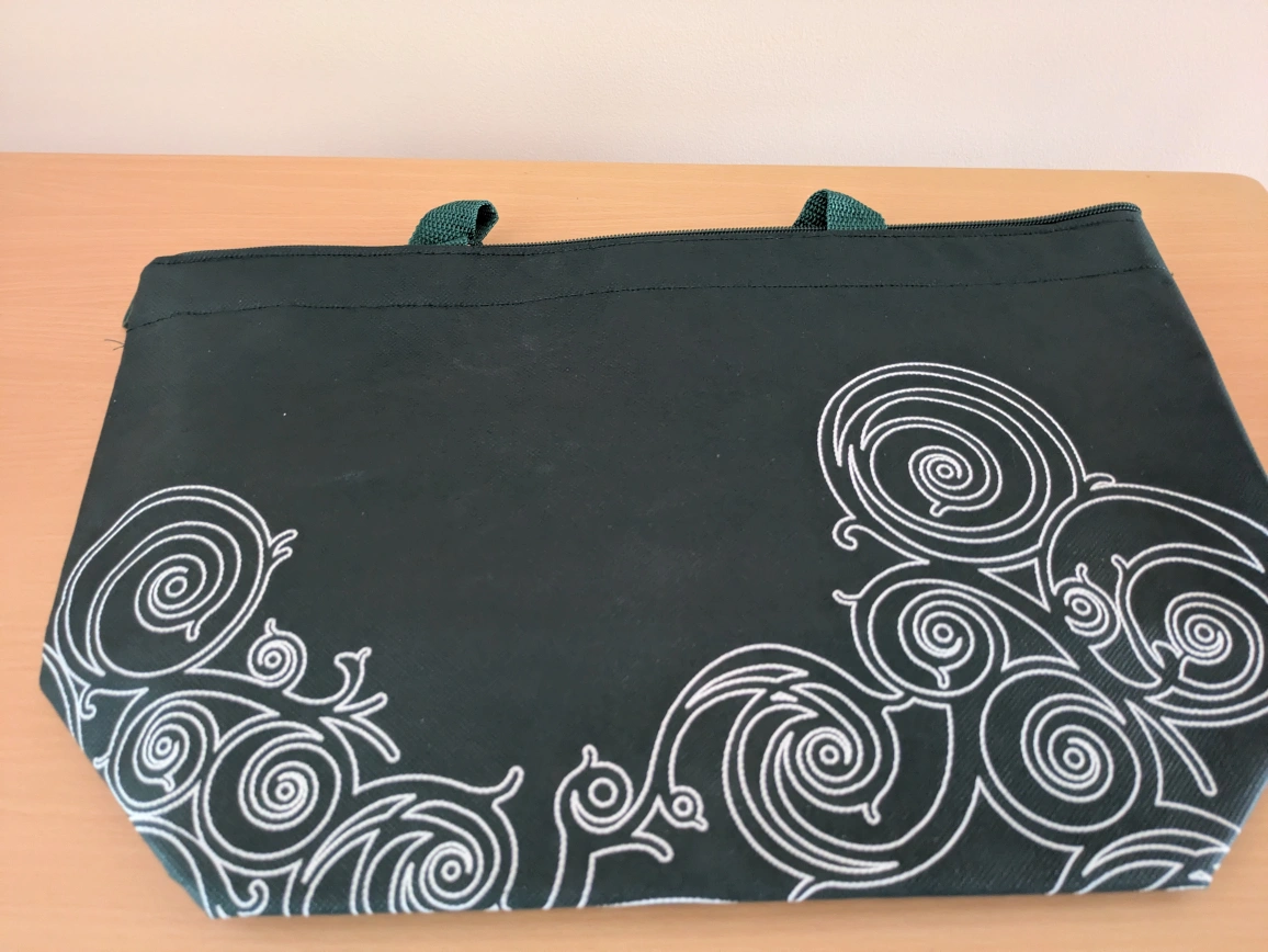 This is a green insulated reusable grocery bag. It's great for keeping your groceries cold/hot on the way home from the store