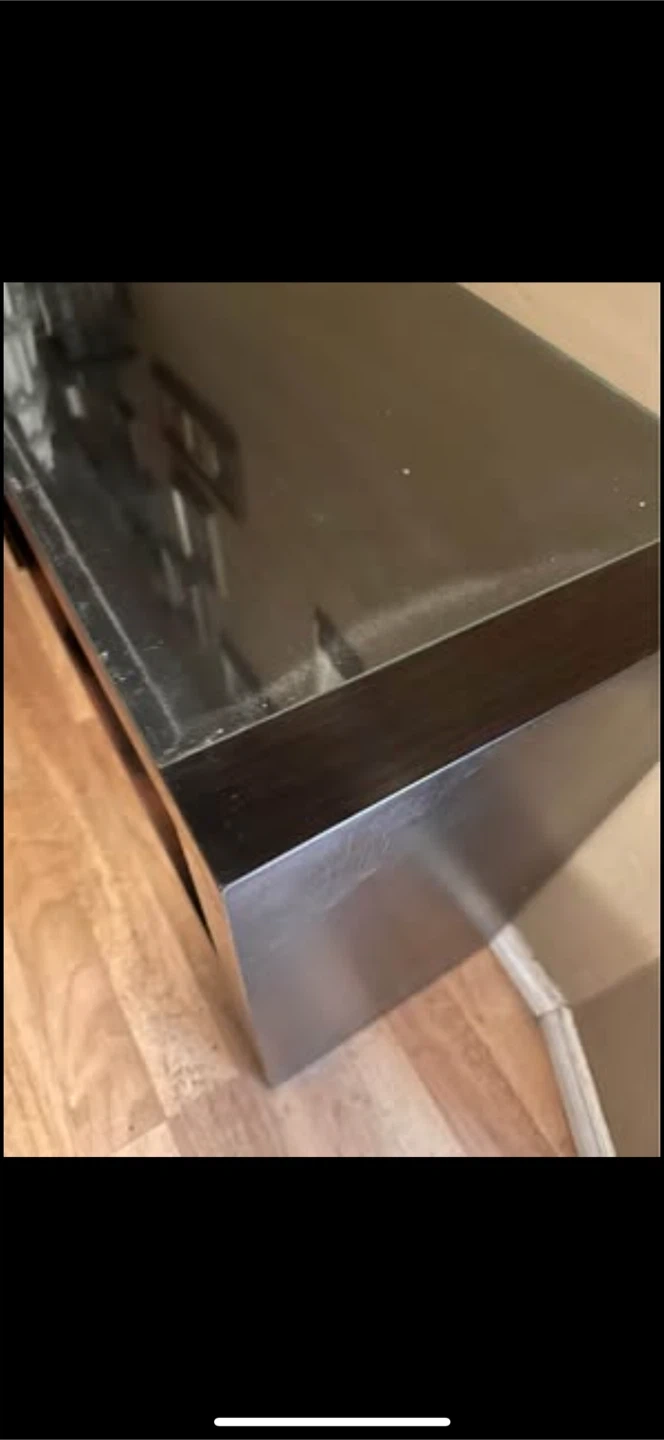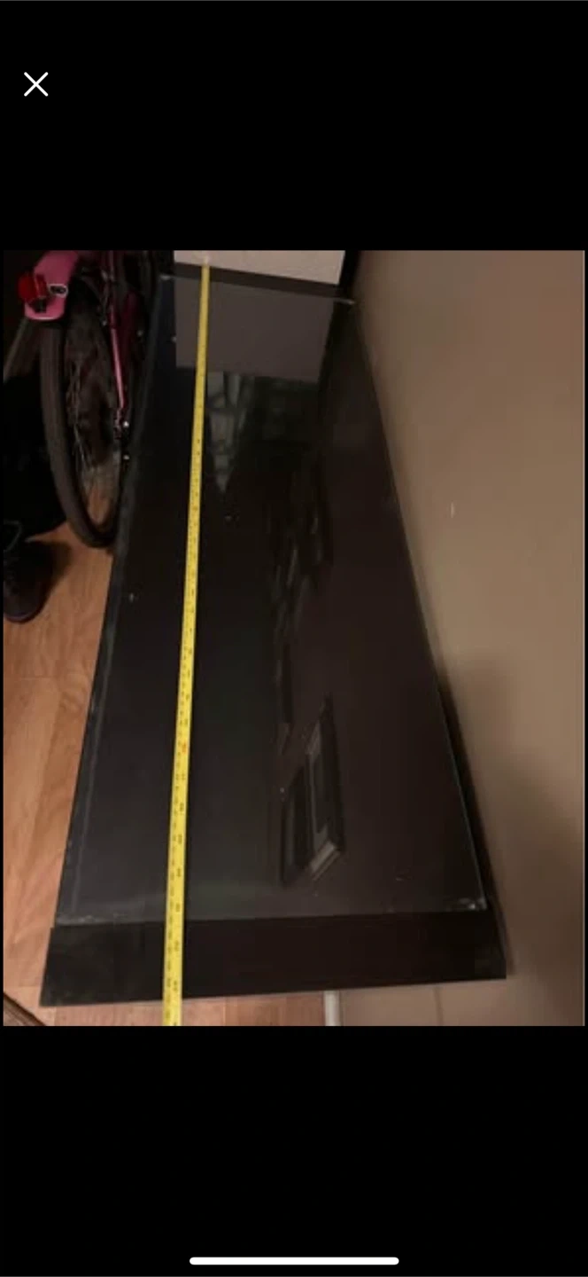 Selling a dark brown Ikea stand with a glass top that comes off, It's in good condition and ready for a new home! The dimensions are approximately 44 inches in length, 18 inches in width, and 31 inches in height. It has a shelf underneath for extra storage