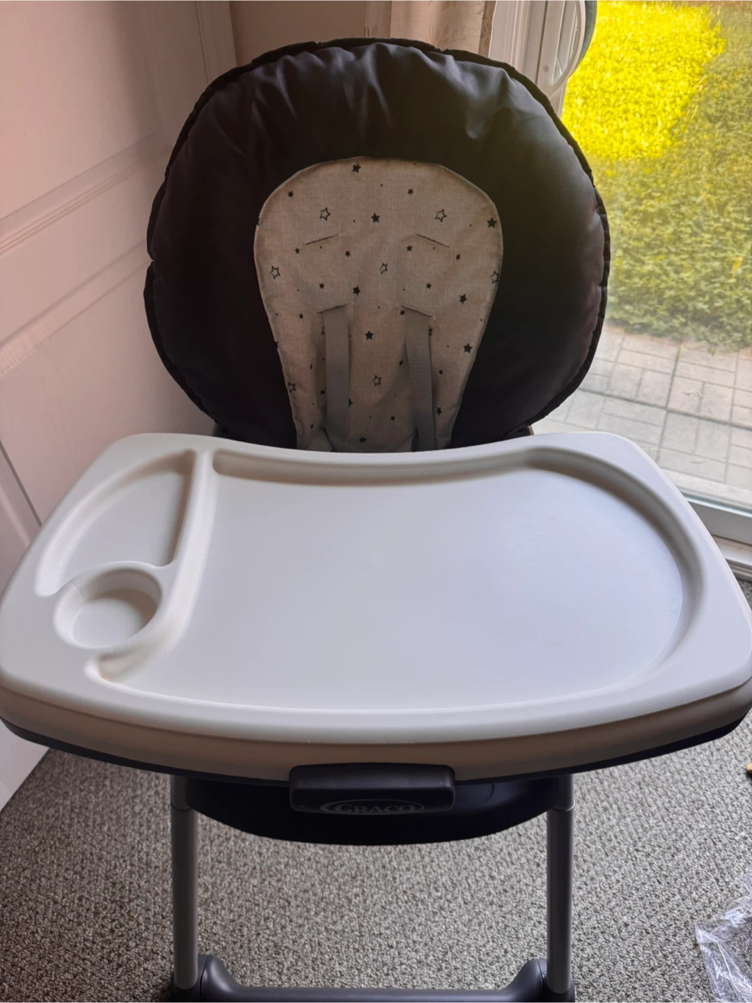 Selling a Graco 6-in-1 high chair. It's in great condition and ready for a new home. This versatile high chair grows with your child through 6 different stages!
