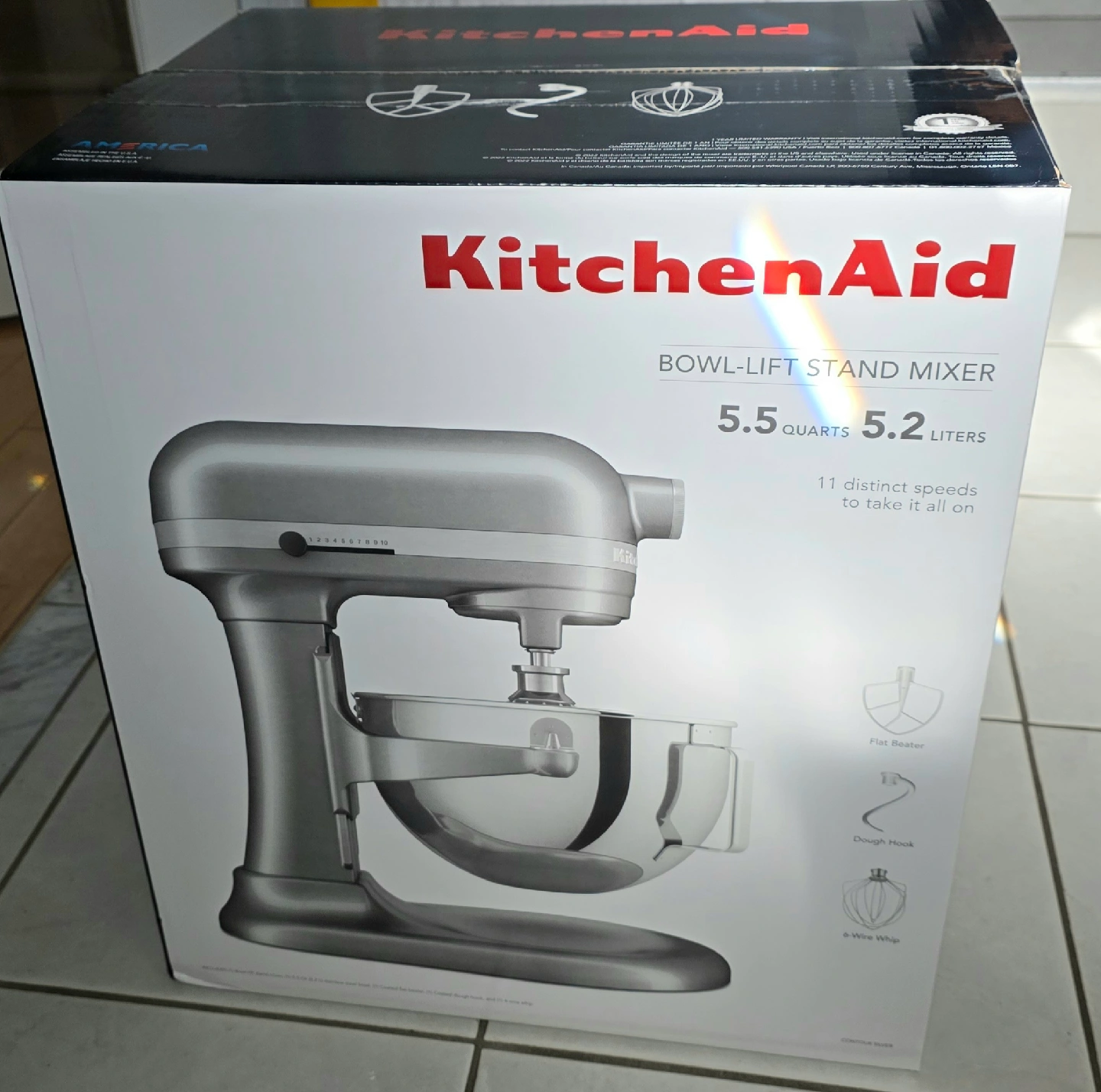 BRAND NEW IN BOX sealed with full warranty. Model KSM55SXXXCU (newest one). Pickup in Markham (16th & McCowan). Retails $700+tax at CT: https://www.canadiantire.ca/en/pdp/kitchenaid-5-5-quart-bowl-lift-stand-mixer-contour-silver-0439000p.html Check my other listings for more great deals. Up your culinary caliber with 2x the power in the bowl than our Tilt Head Stand Mixer.* Professional-style performance paired with a 3-point locking bowl provides you with stability for mixing heavy, dense ingredients. Designed with 11 distinct speeds, including 1/2 speed, you'll have power and control from high to low, and everything in between. So no matter if you're folding, kneading, mixing, shredding, or beating, the KitchenAid 5.5 Quart Bowl-Lift Stand Mixer is designed to take it all on. To amplify your creativity, explore 10+ stand mixer attachments, each with the power to open a world of untapped cooking techniques, experimentation and inspiration. Model KSM55SXXX includes (1) 5.5-qt stainless steel bowl (1) coated flat beater (1) coated dough hook (1) 6-wire whip