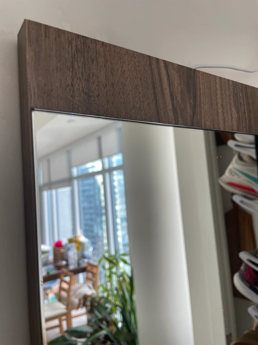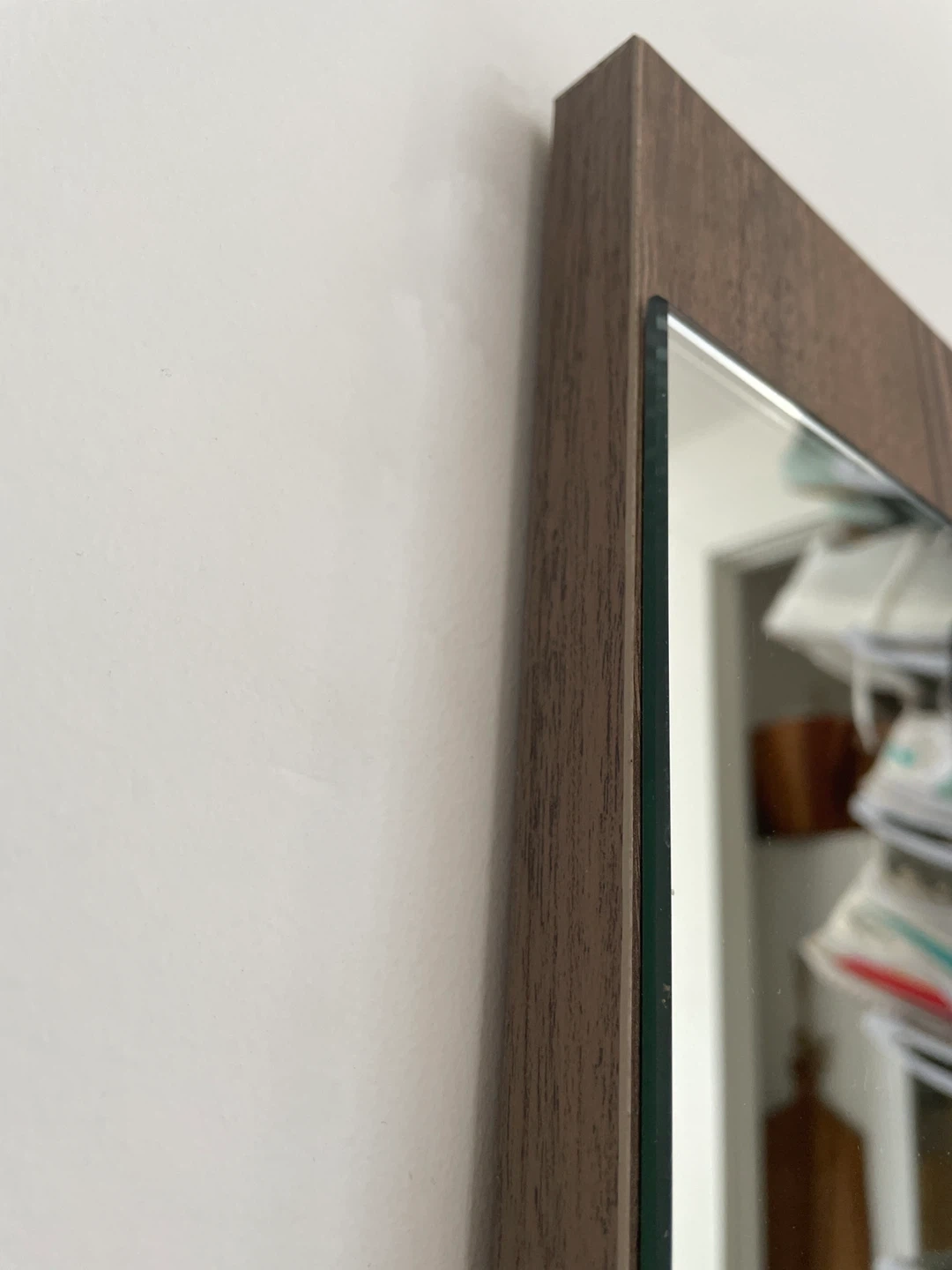 Selling a full-length mirror with a brown wood-look frame. It's in great condition and ready to brighten up your space! Perfect for bedrooms, closets, or entryways to check your outfit before heading out the door