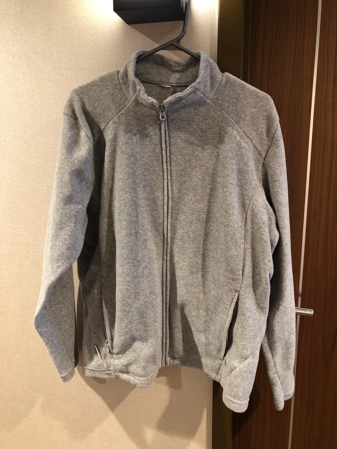 Cozy Stratermic fleece jacket in a neutral grey colour. Perfect for layering on chilly days! It's in great condition and ready for a new home