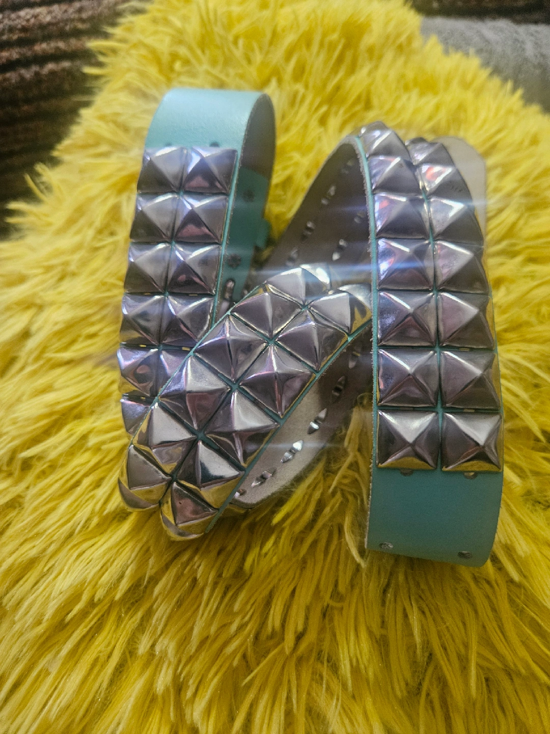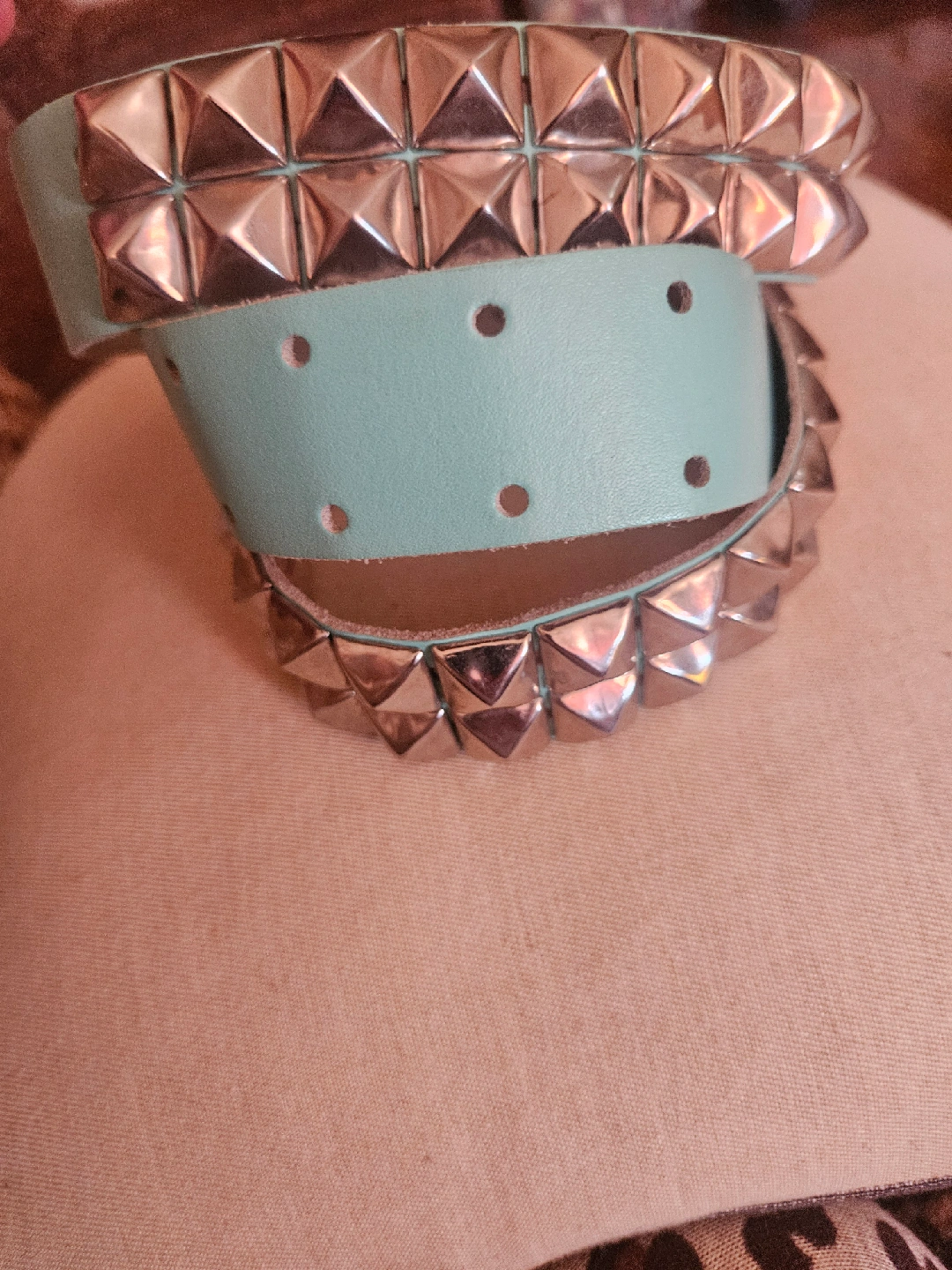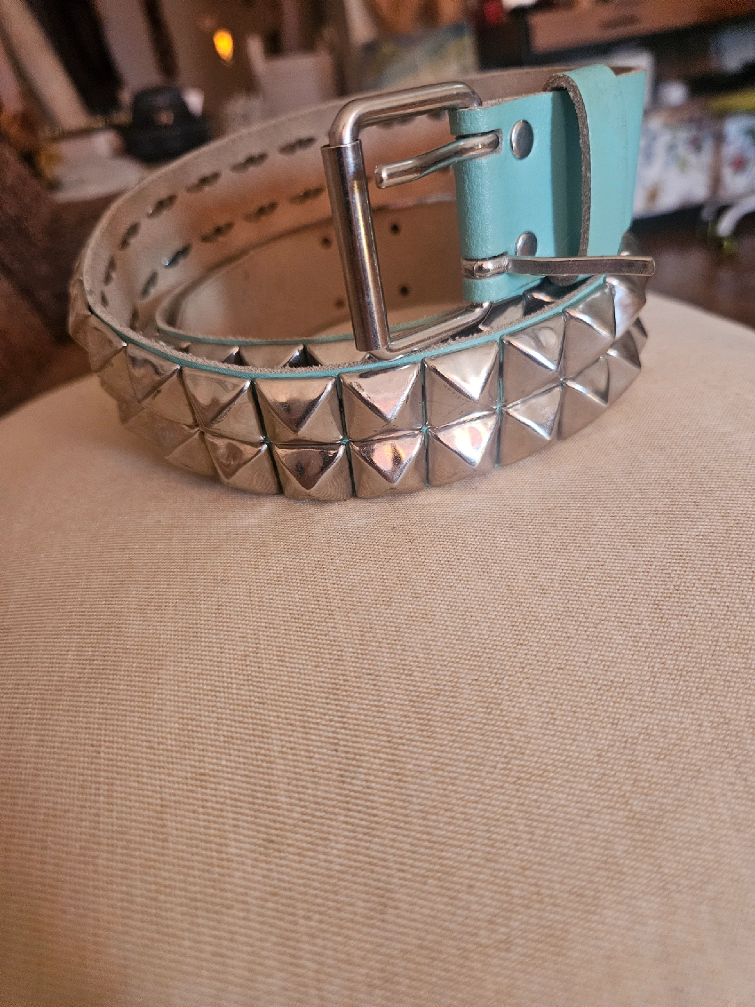 Leather Rock belt W/ silver-tone studs,made in Sweden,fantastic gorgeous. women's, Men's RN 0101255 Divided