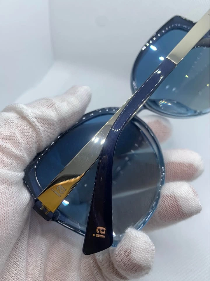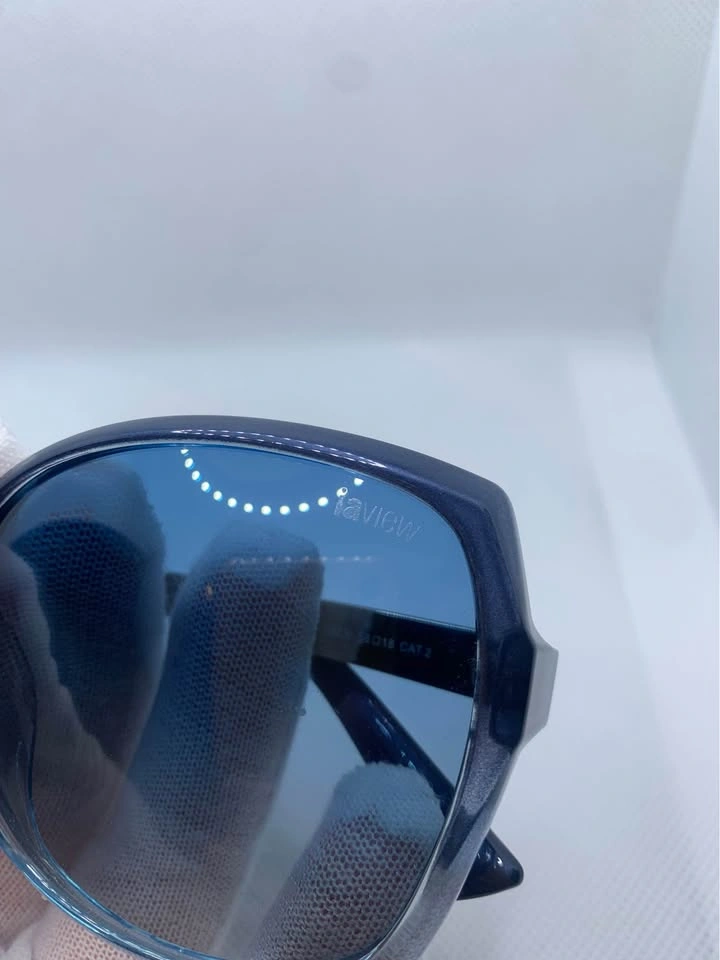 Brand: iaVIEW Lens: polarized with UVA/UVB protection Frame: Gradient blue with gold metal temple Lens: Gradient blue Metal hinges, logo on side temples and lens.