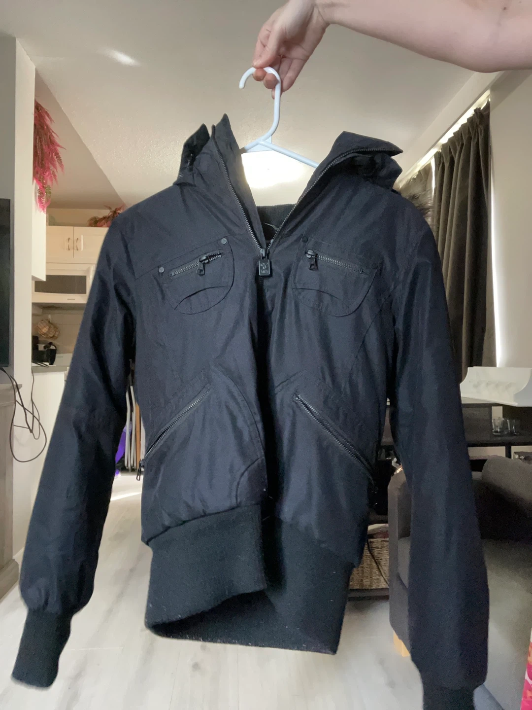 Selling a black Aritzia TNA St. Moritz Winter Bomber Jacket, size Small, in excellent condition. 🧥 Features: Detachable hood and removable faux fur trim Thick ribbed waistband and cuffs for warmth and wind protection Multiple zippered pockets Super cozy and stylish bomber fit — perfect for cold Canadian winters No rips, stains, or tears – very well cared for Smoke-free home This style is no longer available in stores and remains a fan favourite for its warmth and versatility. Pick up downtown Vancouver!