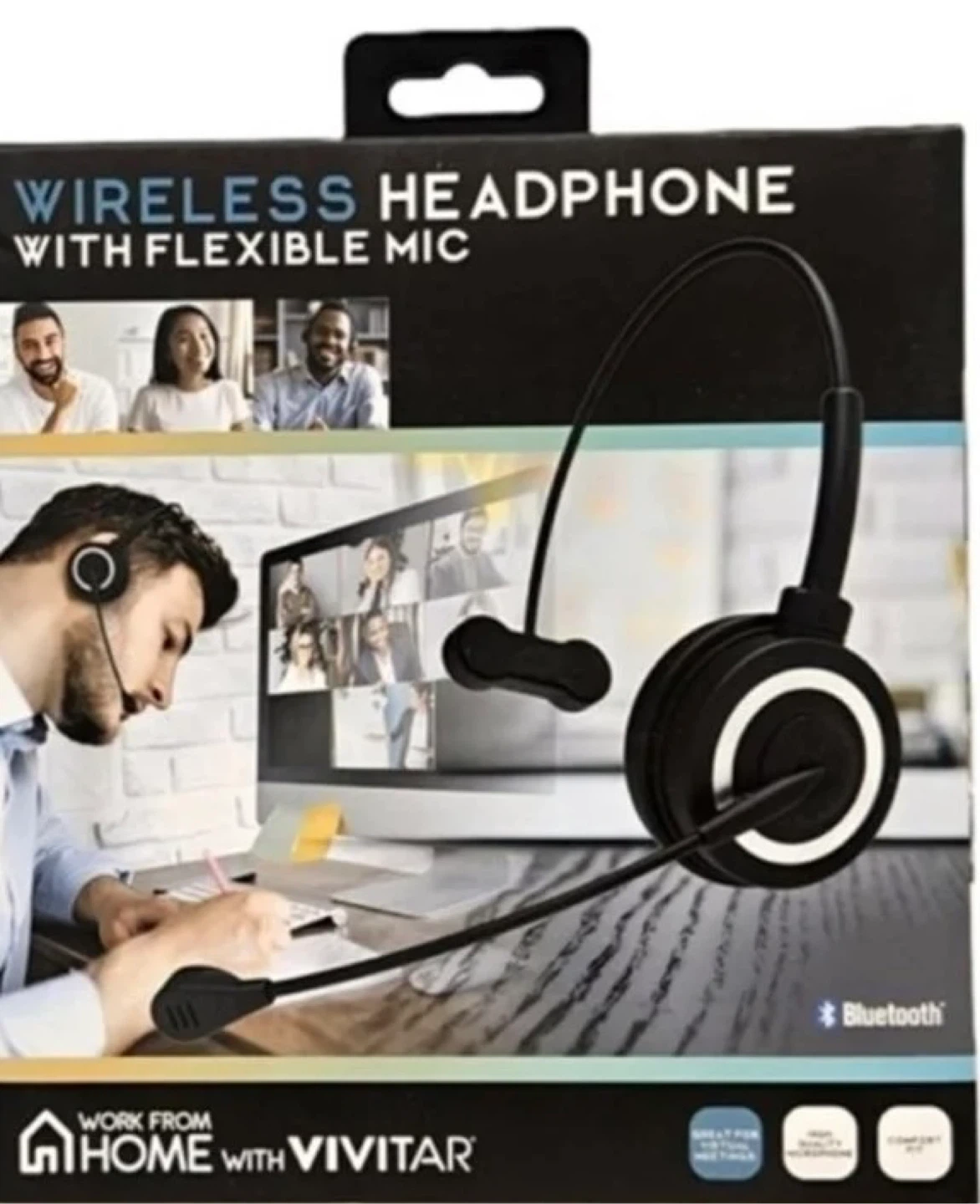Selling a Vivitar Work From Home wireless headphone with a flexible mic. It's great for virtual meetings with high-quality microphone and comfortable fit. Bluetooth enabled.