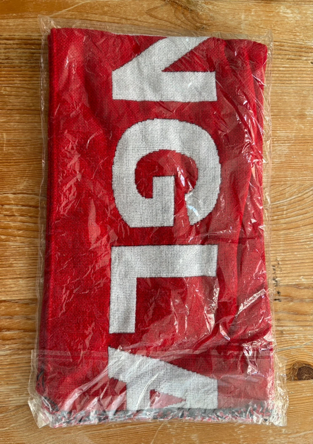 Selling a brand new FC Barcelona scarf, still in its original packaging! It's a vibrant red colour with the team's name in bold white letters. Perfect for any Barça fan!