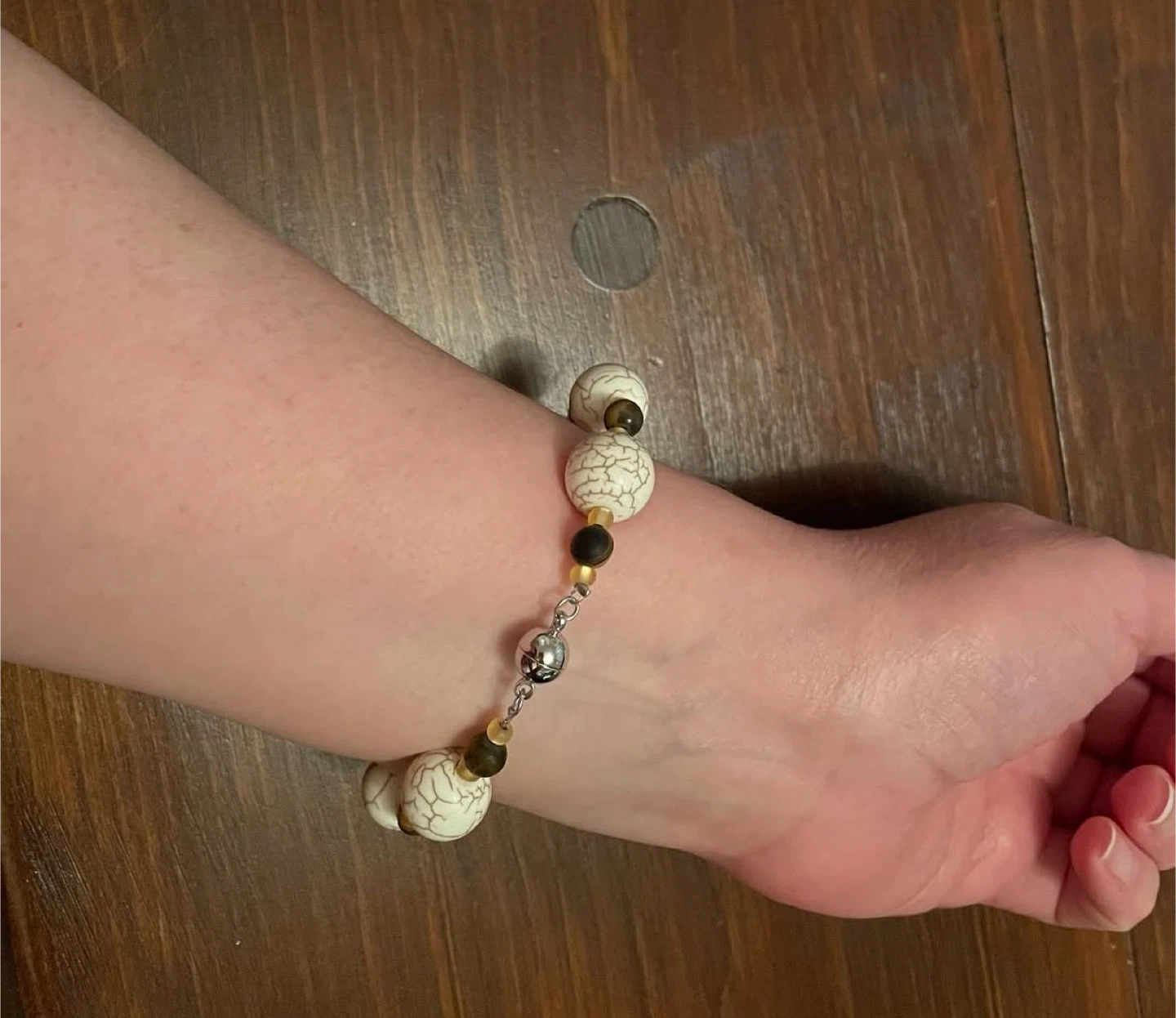 White Howlite and Tiger’s Eye bead bracelet