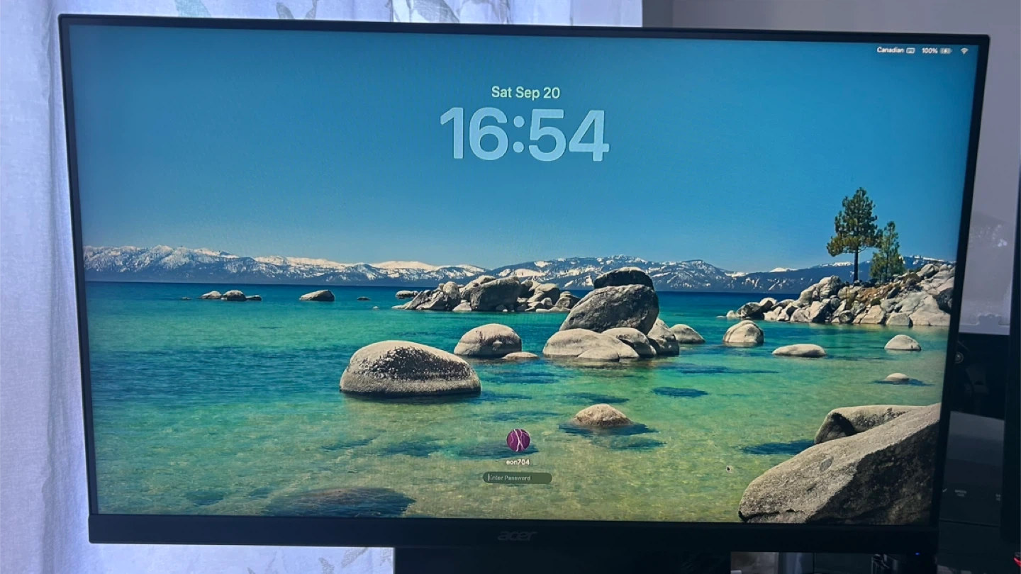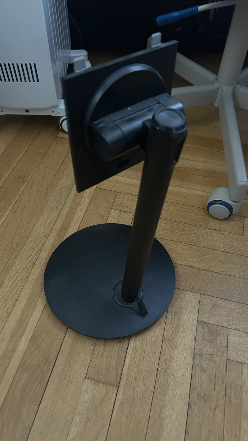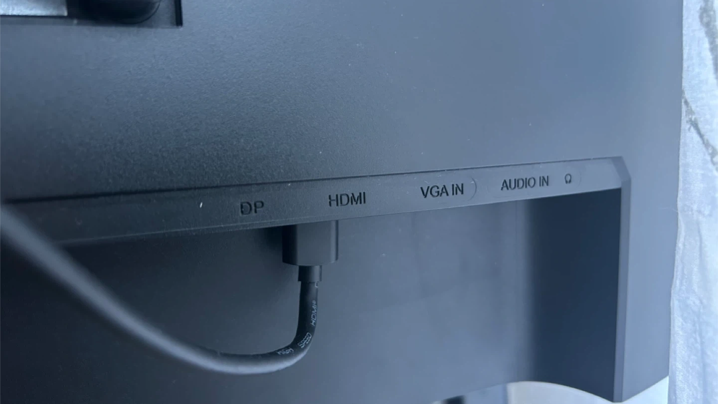 It comes with a stand and has ports for DP, HDMI, VGA IN, and AUDIO IN.