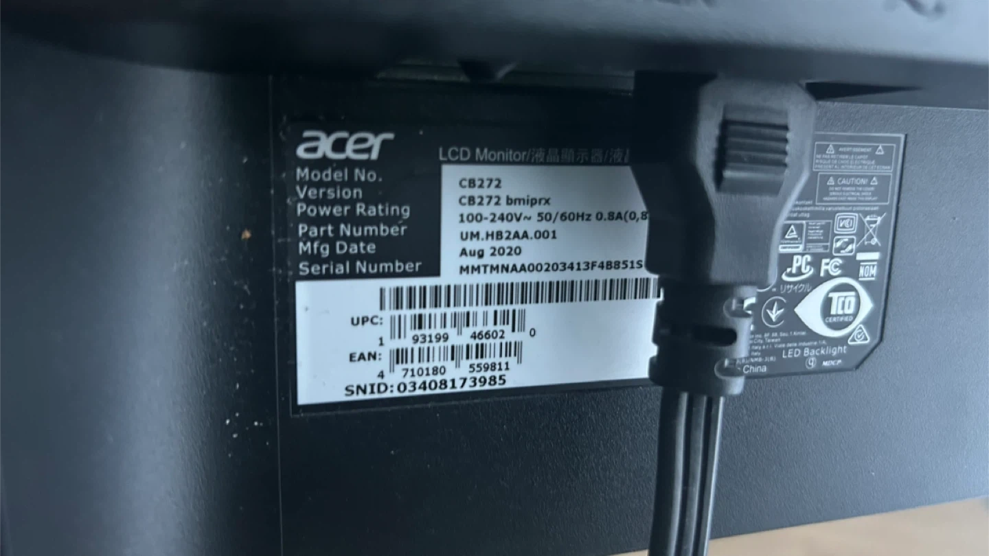 The manufacturing date is August 2020. Model number CB272 bmiprx.