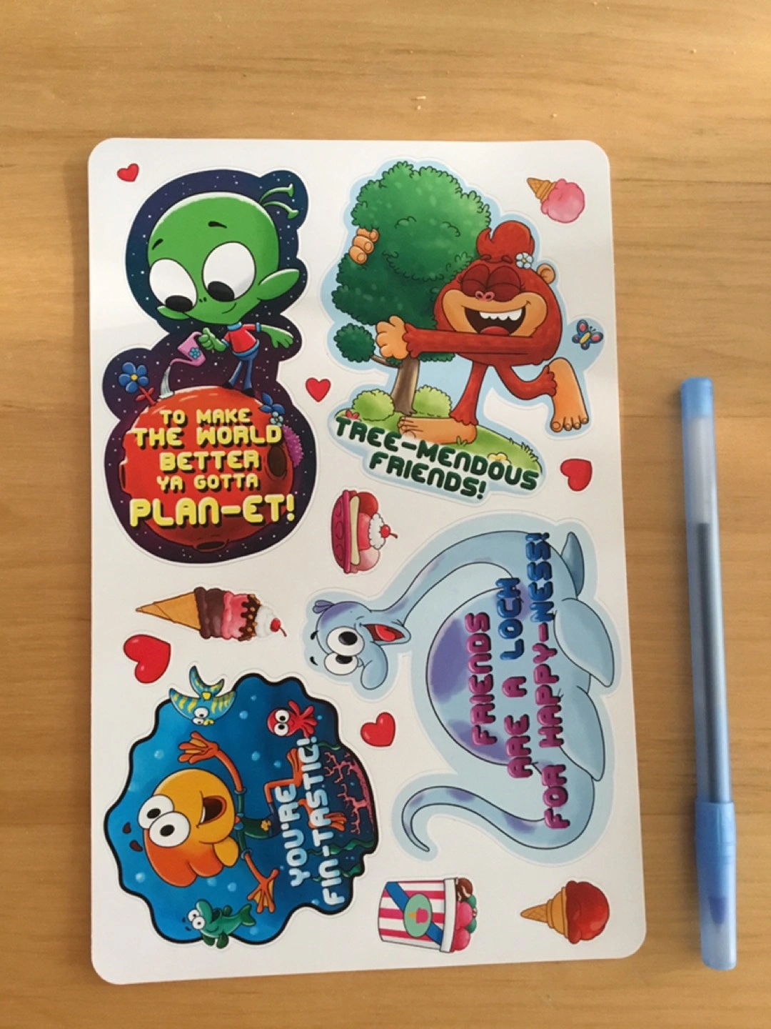 Stickers set with 14 stickers, shinning finishing. It goes very well with any notebook, even computers. Nice gift for an environmentalist, a park planner, a tree-mendous friend, a fish lover, a dinosaur lover , ET lover, special person who bring you happiness, like a kid!