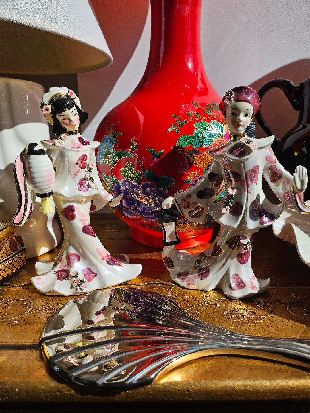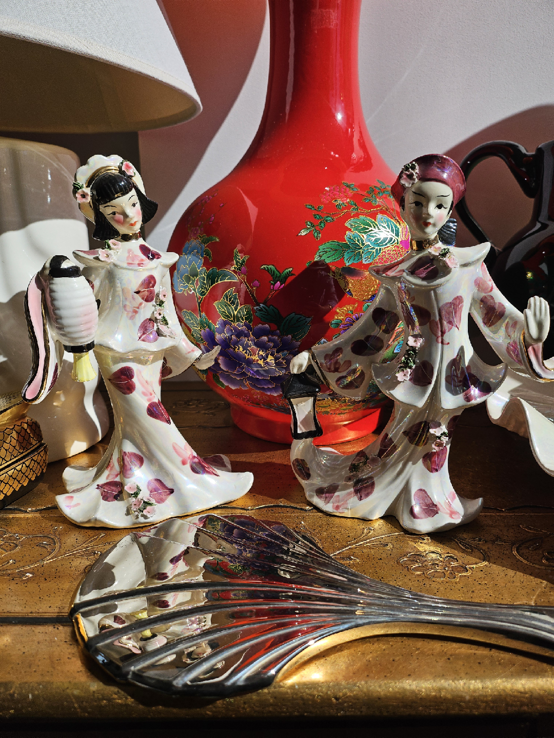Selling 2 lovely vintage Geisha and boy figurines 1960s ESD Japan. This piece features delicate details and a unique design. It would make a great addition to any collection or a charming decorative piece for your home