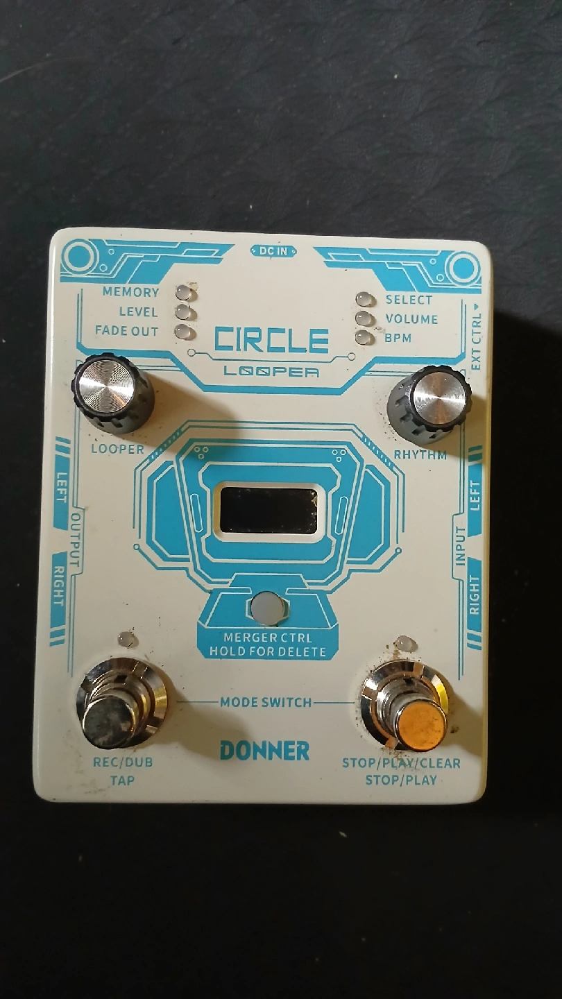 Selling a Donner Circle Looper pedal. It's in great shape and ready to use! Perfect for adding looping capabilities to your guitar setup. It has controls for memory level, fade out, select volume, and BPM. There's also a mode switch and controls for rec/dub tap and stop/play/clear