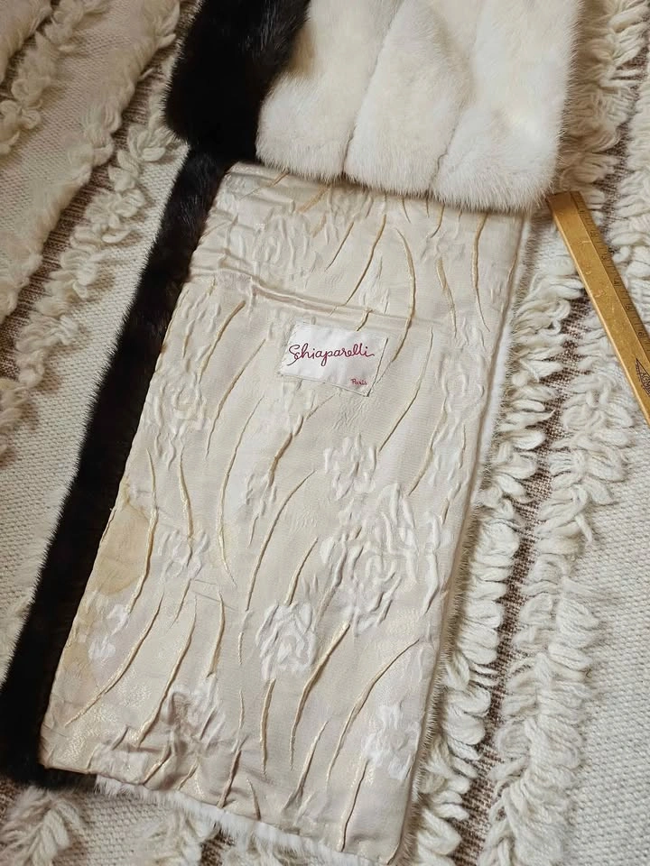Vintage Elsa Schiaparelli real fur scarf. There are a few stains on the inside of the fabric, but I did bring it to the cleaners and ask if it is possible to remove it, and he said yes. The length is 70" and this is a very rare scarf from Paris. Check pictures for references