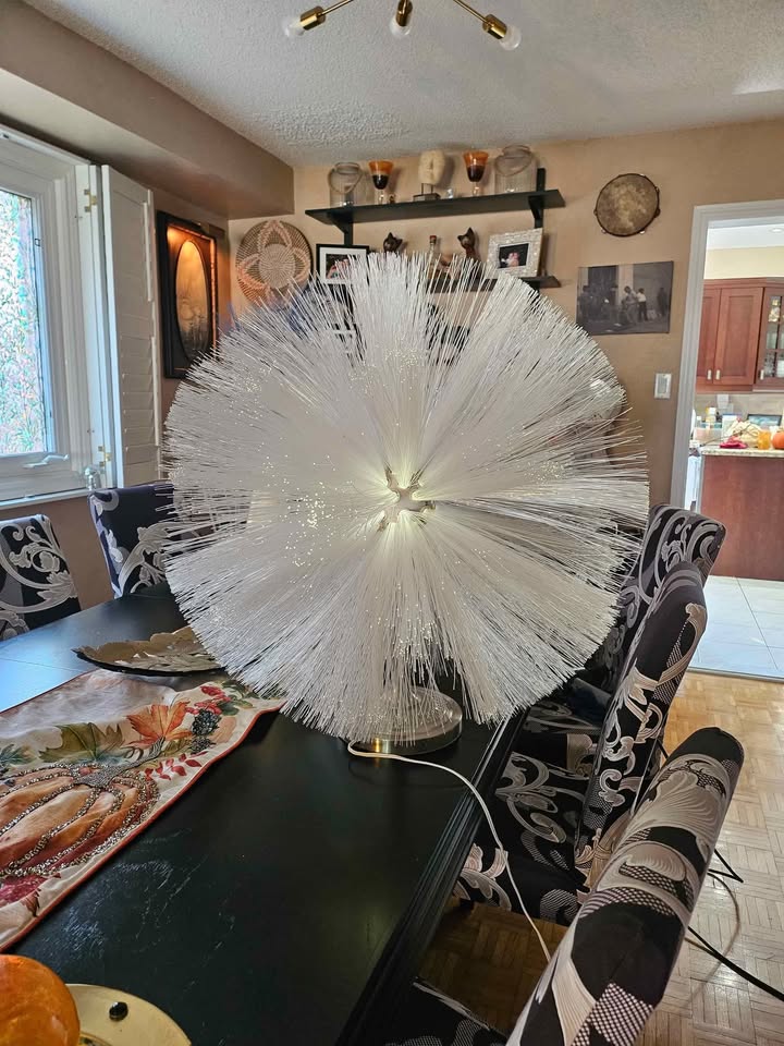 I bought this gorgeous vintage IKEA chandelier but unfortunately the plug was missing. I got an idea and I transformed the chandelier into a lamp. The materials was added by me and now I have this super rare IKEA fiber optic lamp. It us huge 28 inches diameter. Pick up only at 471 jevlan drive unit 7 Woodbridge. Deposit is required to hold the item.