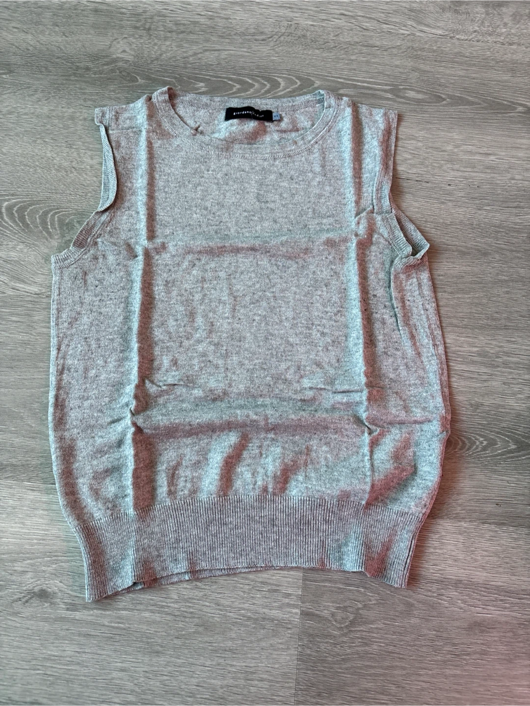 Selling a gently used Giordano sleeveless knit top. It's a light grey colour and in great condition. Perfect for layering or wearing on its own during warmer weather. Size small