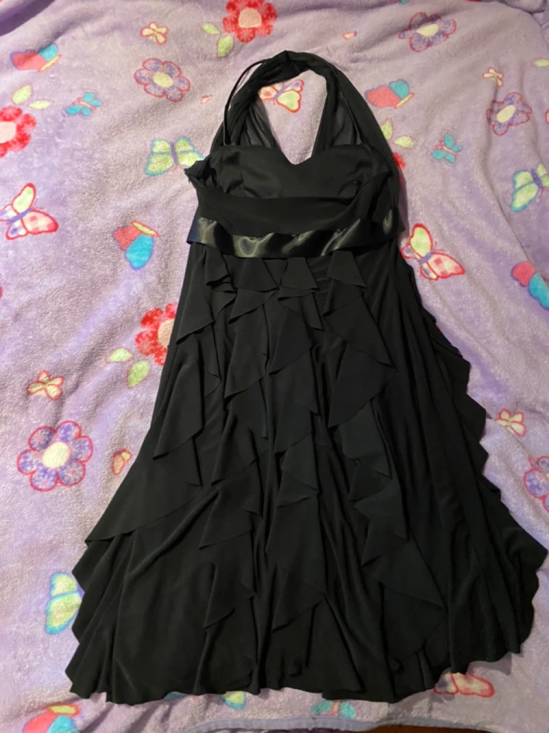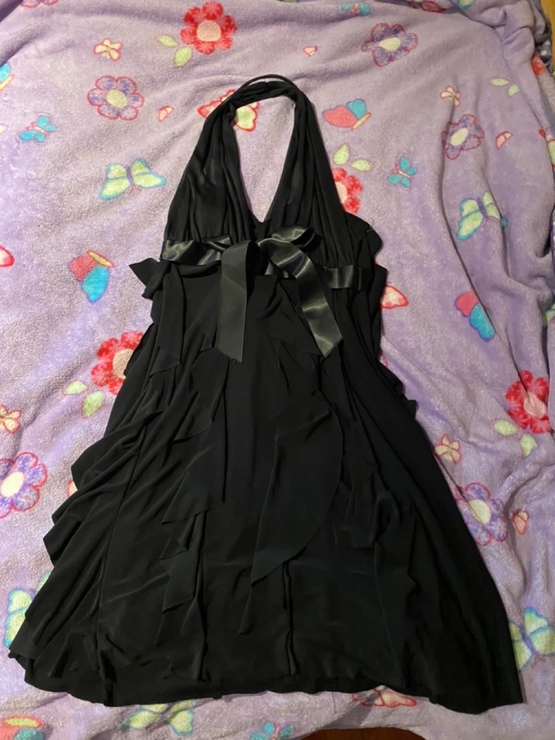 Selling a cute black halter dress! It features a ribbon detail at the waist and a flattering silhouette. Perfect for a night out or a special occasion. It's in great condition and ready for a new home!
