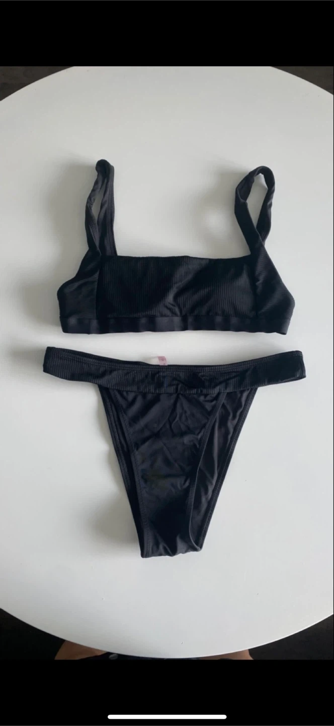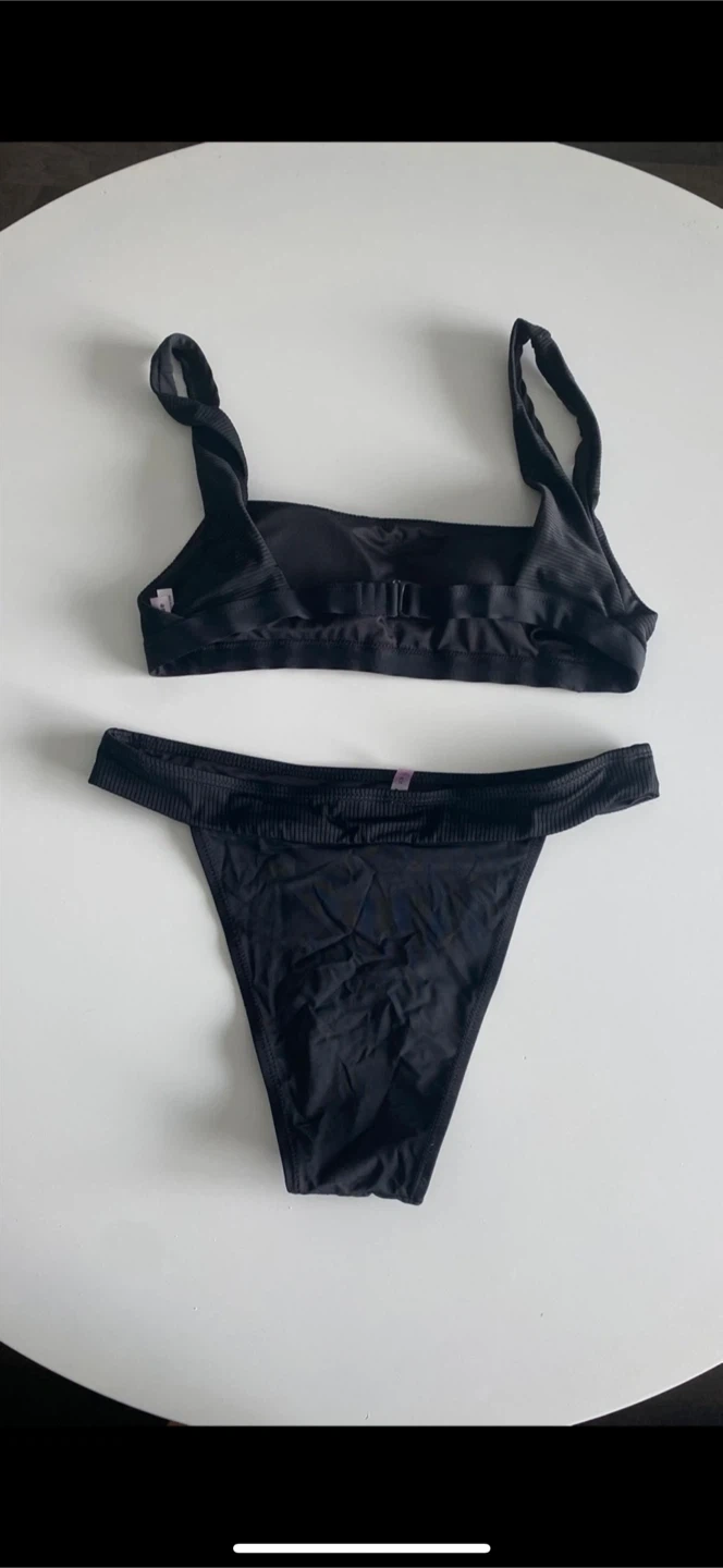 564Selling a cute bikini set! Includes a bralette-style top and high-waisted cheeky bottoms. Perfect for the summer season.
