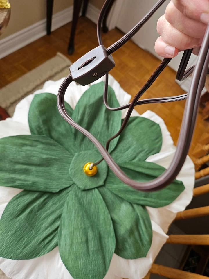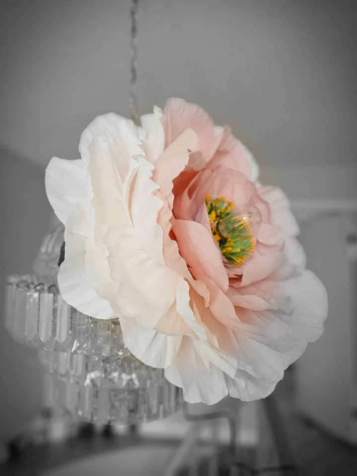 Beautiful handmade paper flower . The light bulb is cold light. Pick up at 471 jevlan drive unit 7 Woodbridge. 60cm diameter x 19cm height.