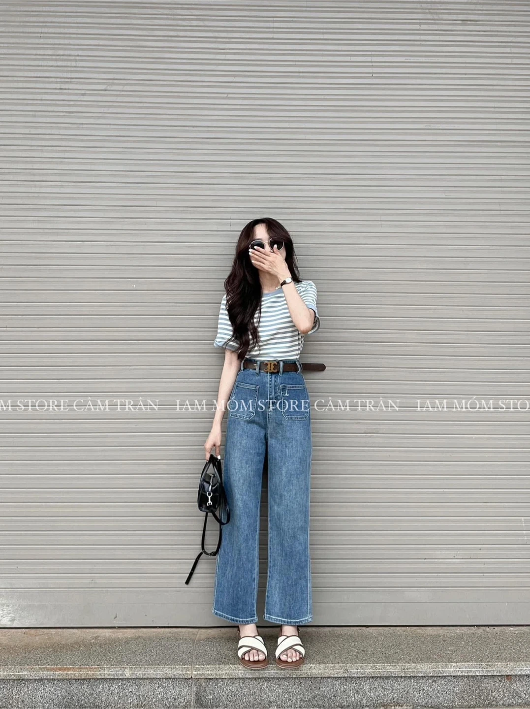 58Selling a pair of women's wide leg jeans. They are a light blue wash and feature front pockets. Perfect for a casual, stylish look!