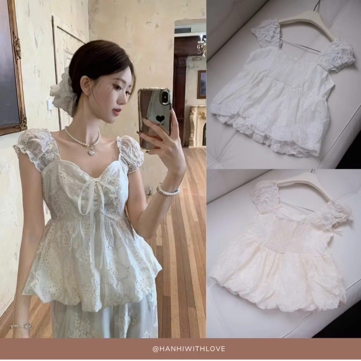 58Selling a beautiful lace top from HANHIWITHLOVE. It features delicate lace detailing and a flattering silhouette. Perfect for adding a touch of elegance to any outfit!