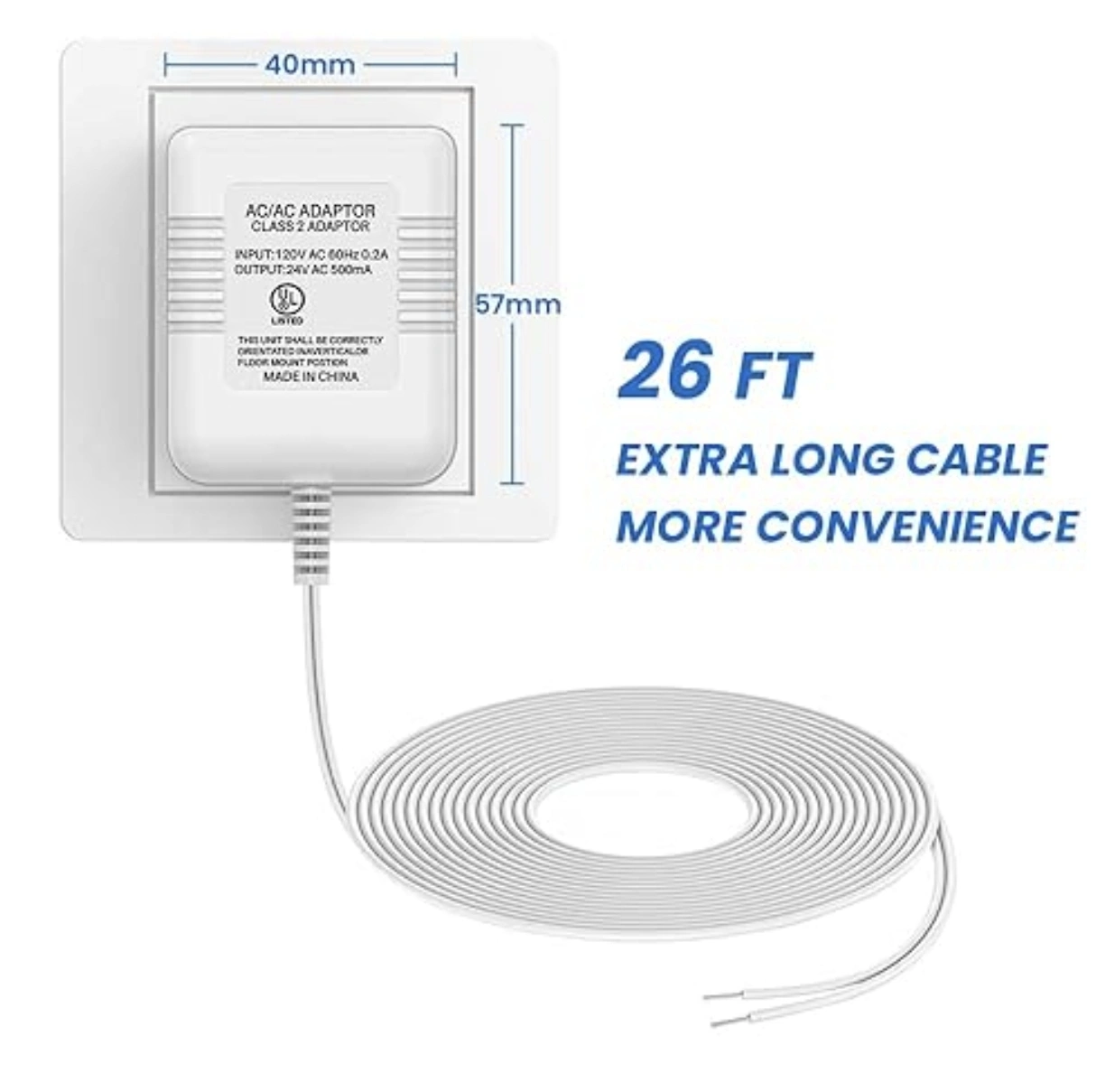This is an AC/AC adaptor compatible with Nest, Ecobee, Honeywell and Sensi smart thermostats, as well as Nest Skybell D Doorbell and Ring wifi Doorbells. It features an extra long 26 ft cable for more convenience when hardwiring your doorbell