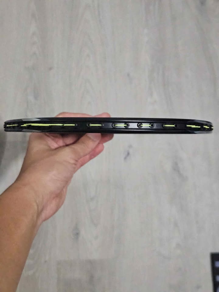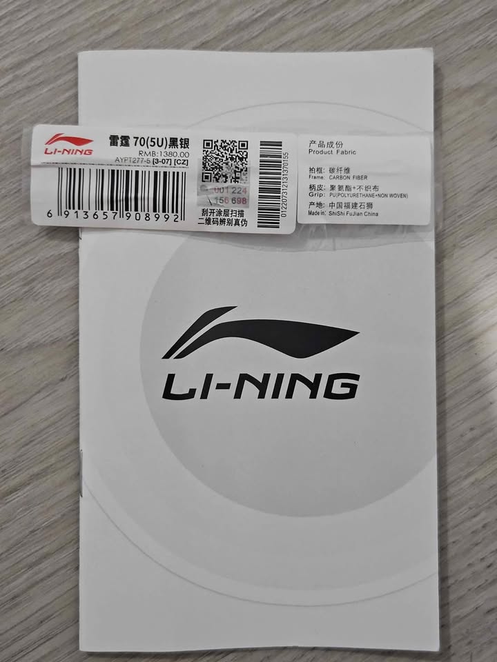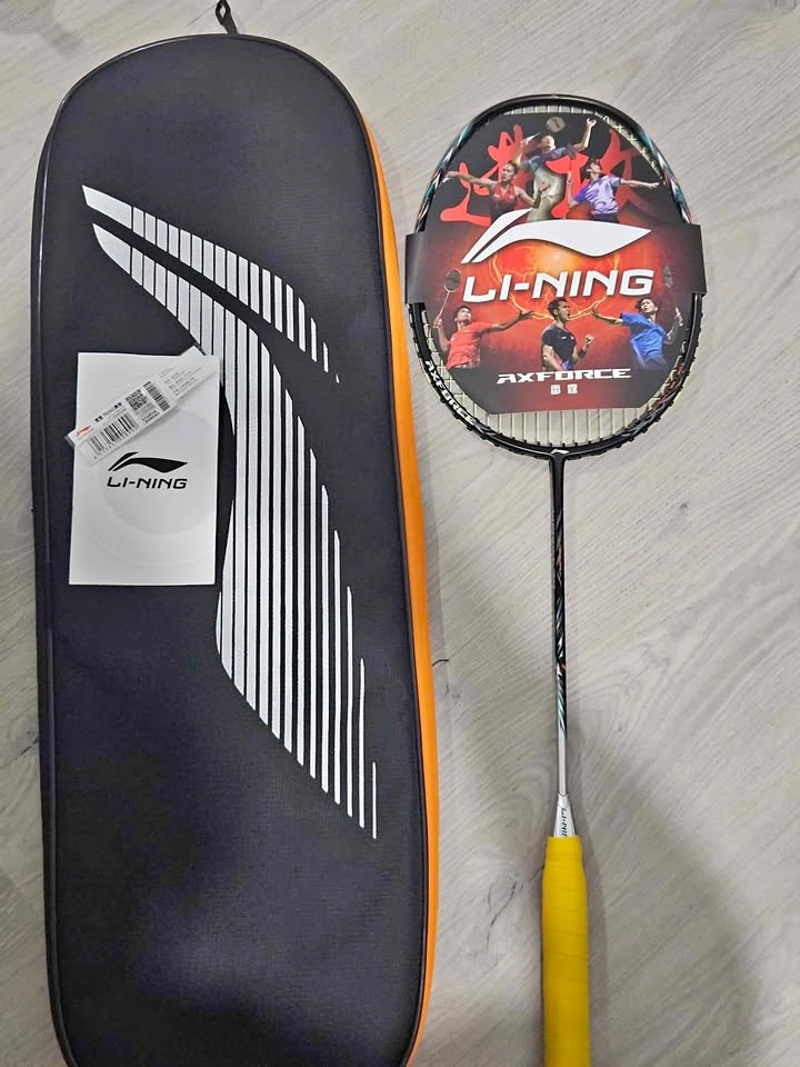 Li-Ning Axforce 70 5UG6 strung with Victor VBS-66 Nano@24lbs. No chips, like new condition.