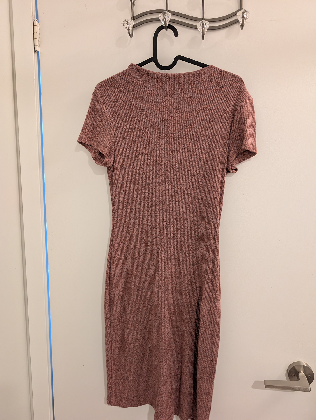 Here's a cute ribbed knit bodycon dress! It's a lovely and would be perfect for a night out or a casual event. The material is soft and comfortable, making it a great addition to your wardrobe