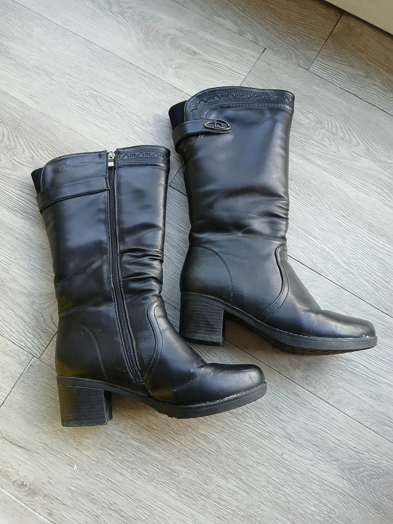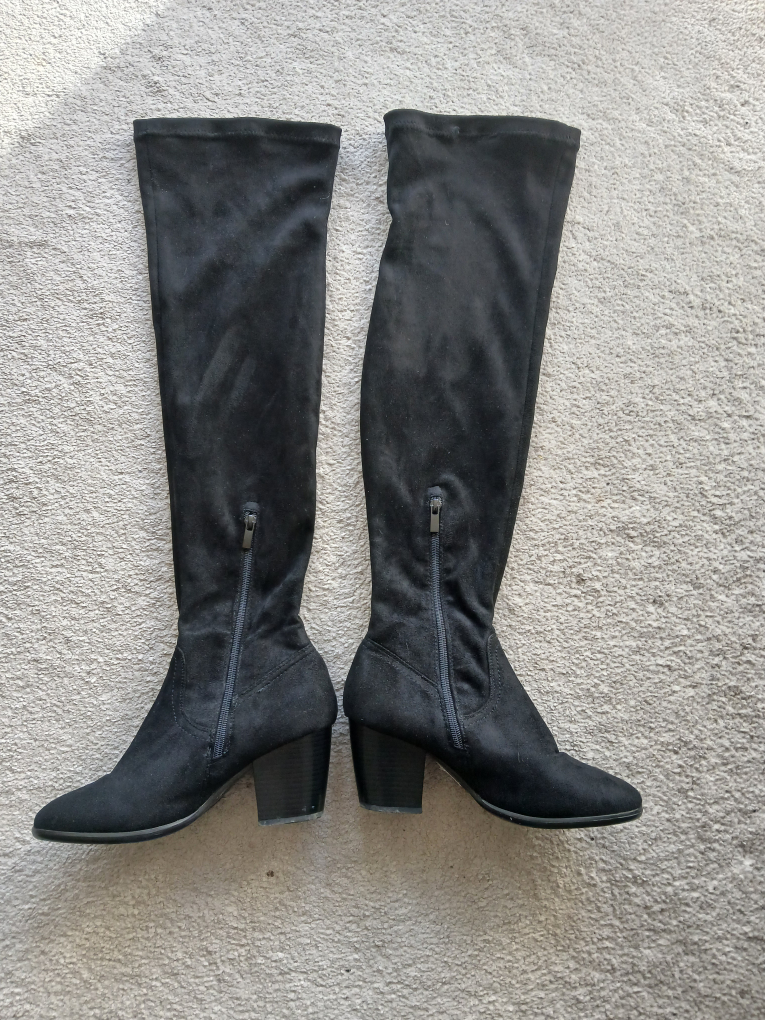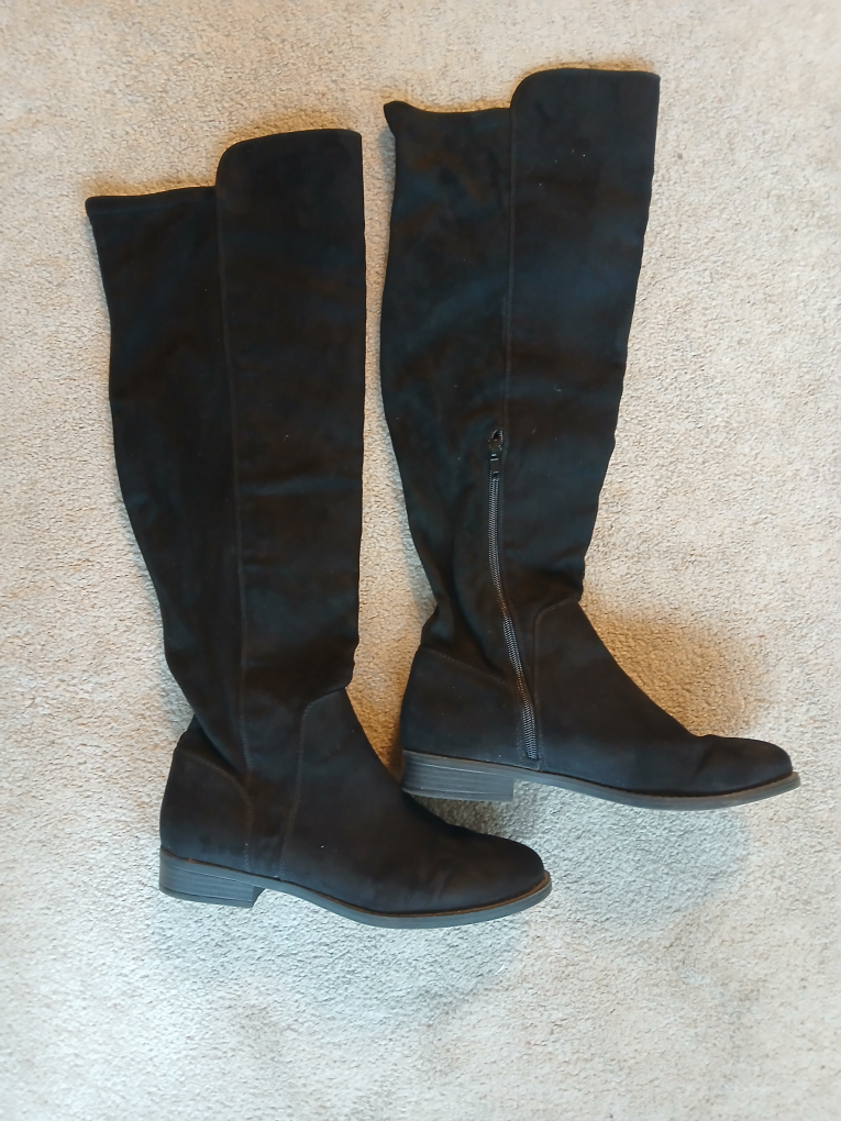 - Canada Comfort black under the knee boots with beautiful detailing size 8 ($80)