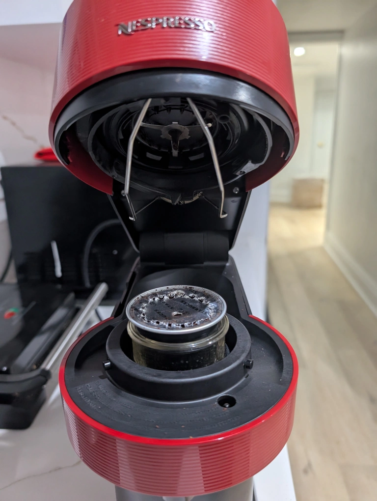 Selling a Nespresso Vertuo coffee machine in red! It's in great shape and ready to make some delicious coffee. it's without cup stand and I don't know it's function and usage. it gets on and water starts chunking but coffee isn't flowing. maybe I don't know it's usage.