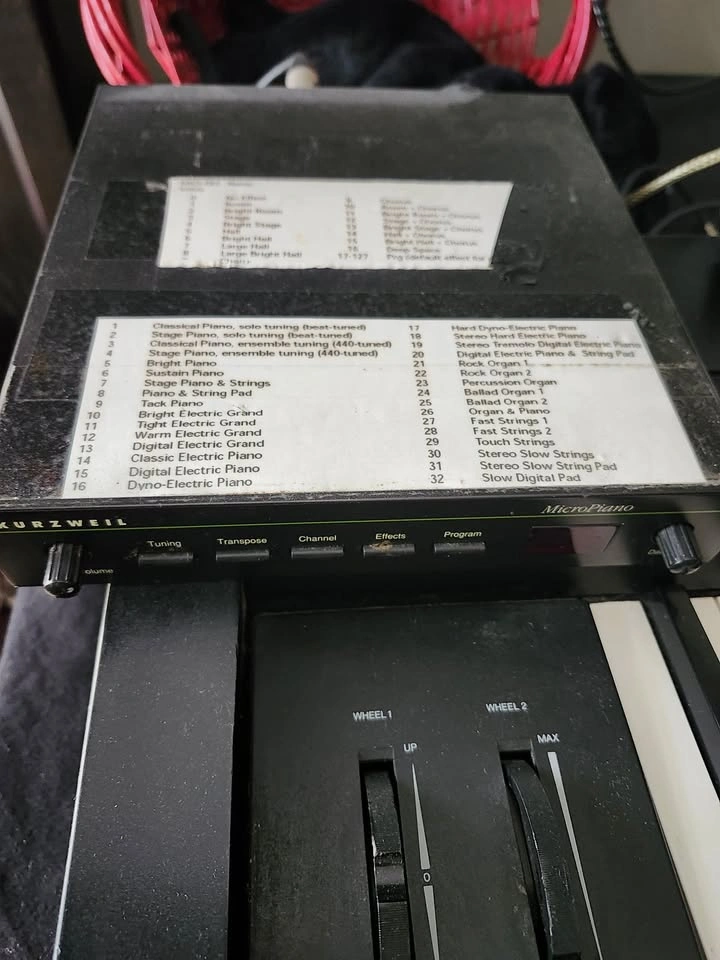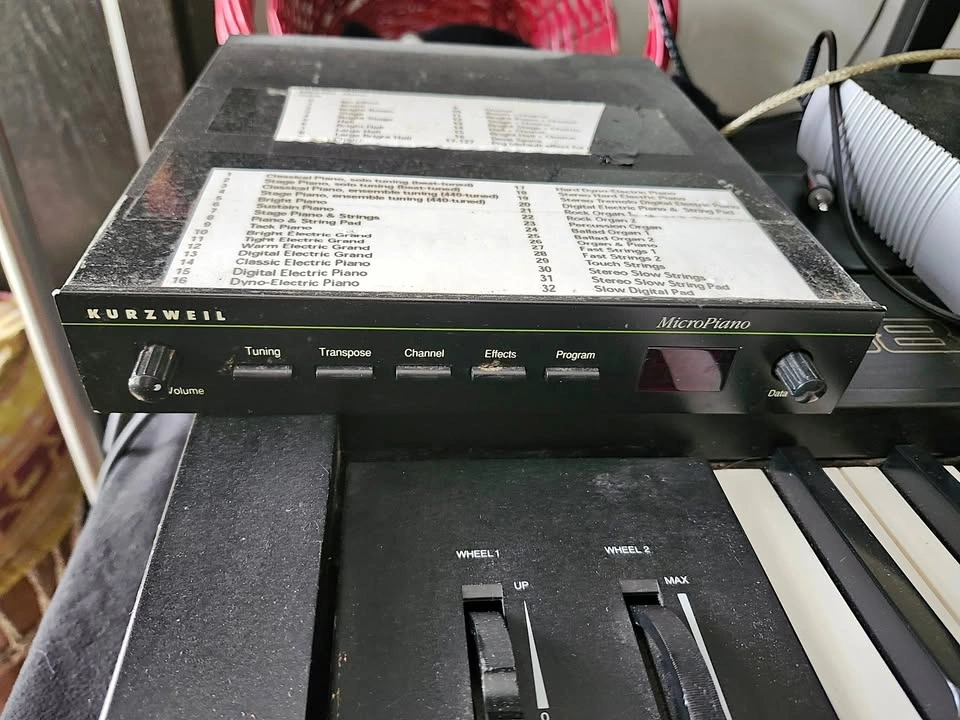 In short - a great-sounding module with Kurzweil sampled sounds, mostly pianos, digital pianos and strings. I have the preset sounds and effects printed and taped to the top, they can easily be removed. You will need a controller or other keyboard to play the sounds, anything with MIDI will work. I used it with my KX88 controller (also for sale) for a fantastic live-piano setup. The MicroPiano is an elegantly unprepossessing unit: half rack width, with a simple, minimalist front panel, it features a couple of knobs (on/off/volume and data entry) and five buttons. These are labelled Tuning (+/‑50 cents), Transpose (24 semitones up or down), Channel (1‑16), Effects (for selecting one of 16 preset effects) and Program, for selecting one of the 32 on‑board sounds, or Programs as Kurzweil call them. The simple three‑character LED display is clear enough for the task at hand; it even includes a MIDI activity light. The Micro offers a creditable 32‑note polyphony, expandable to 64 notes by linking to a second unit. While many of the Micro's samples come from Kurzweil's K2000 library, there is a lot of new material, particularly, it seems, amongst the acoustic pianos. The complement of 32 Programs includes seven acoustic pianos, four electric grands, six electric pianos, five organs (of the Hammond variety) and five strings. In addition, there is a selection of layers (acoustic or electric piano and strings, piano and organ, for example) and something called Slow Digital Pad — this is an excellent moody and ethereal pad