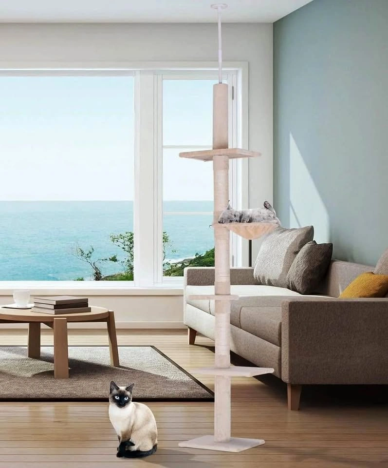 Give your feline friend the ultimate vertical playground! This brand new, sturdy floor-to-ceiling cat tree is the perfect solution for active cats and protecting your furniture.