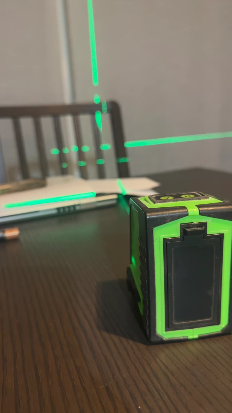 Selling a green laser level, perfect for various projects around the house! It's in great shape and ready to help you get those lines straight. It's super easy to use, just turn it on and you're good to go