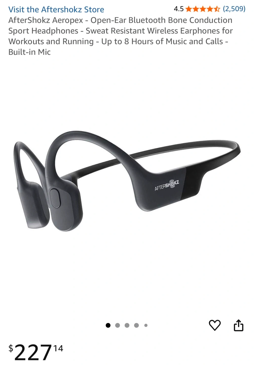 AfterShokz Aeropex Bone Conduction Wireless Bluetooth Headphones, Cosmic Black