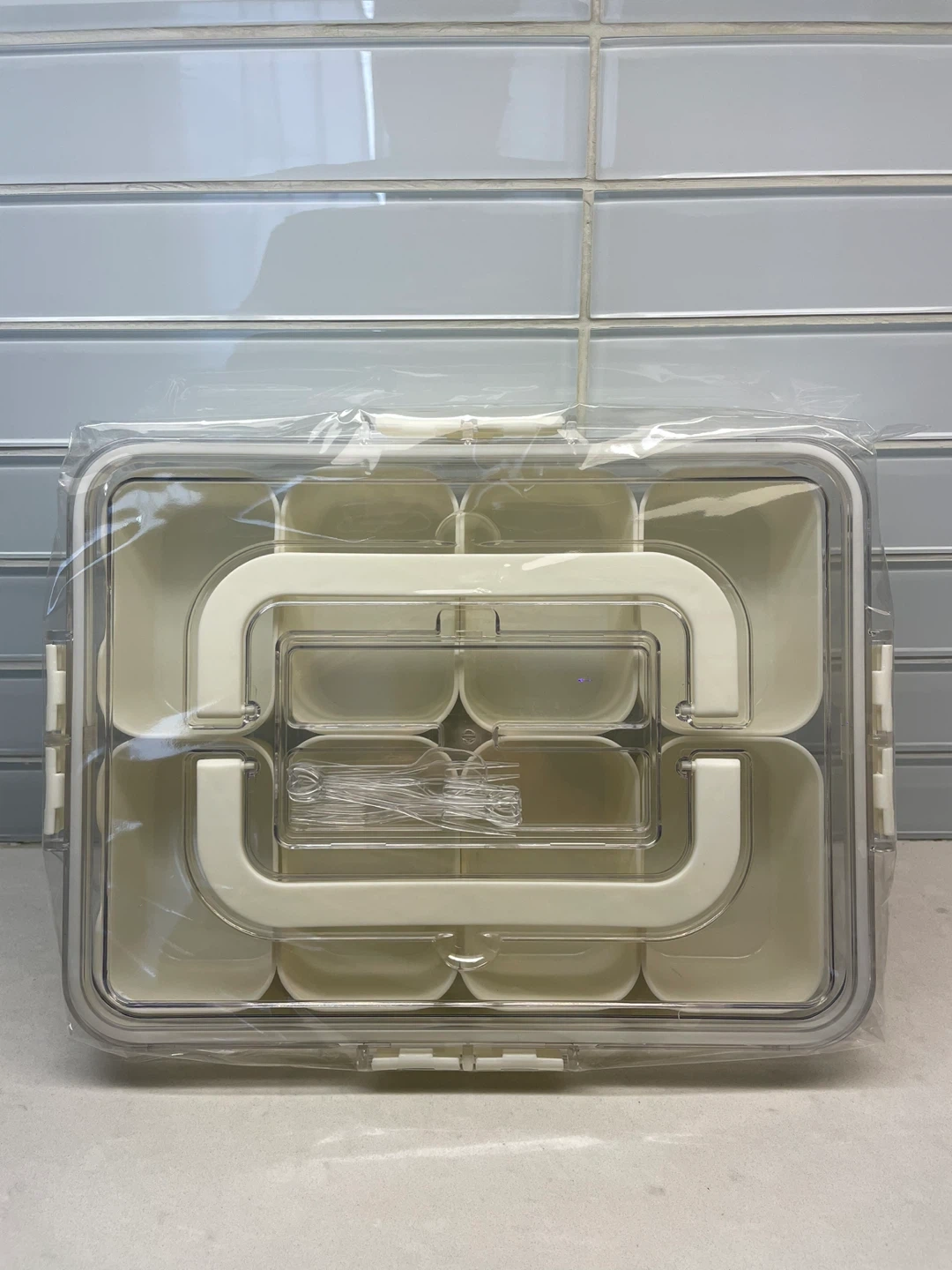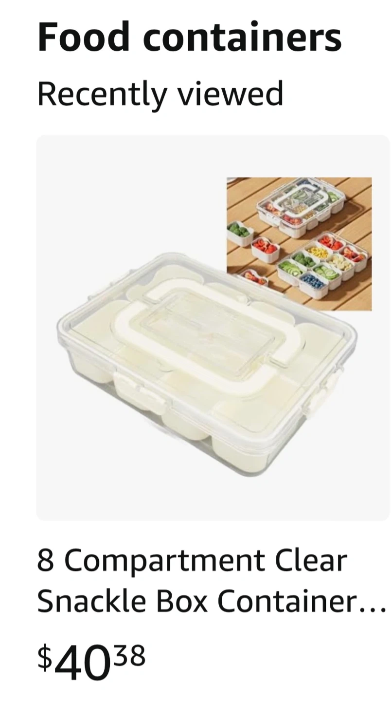 Selling an 8-compartment snackle box container! It's clear and comes with a box. Originally bought for $40.38