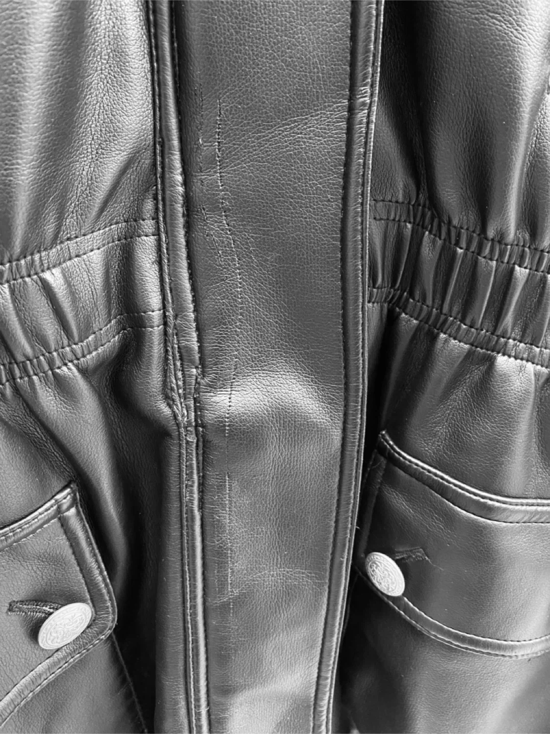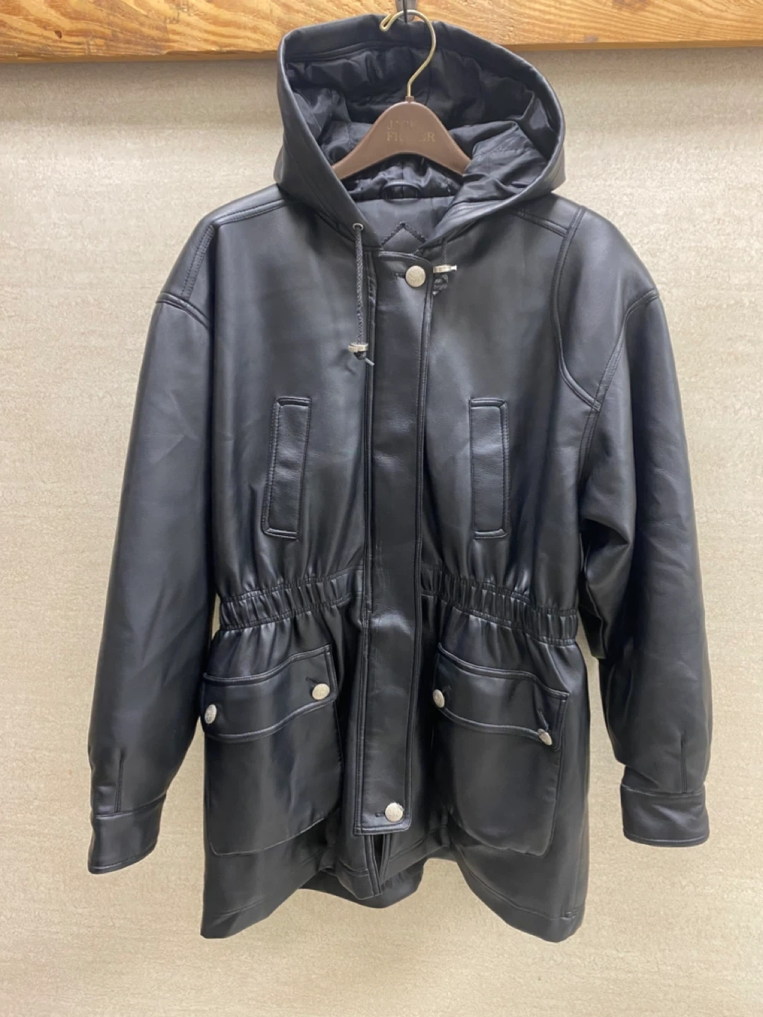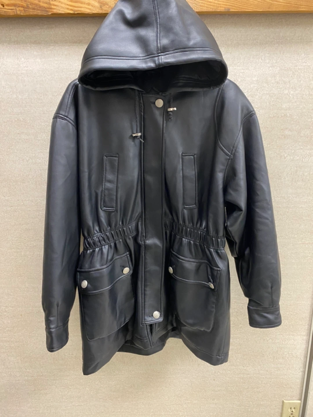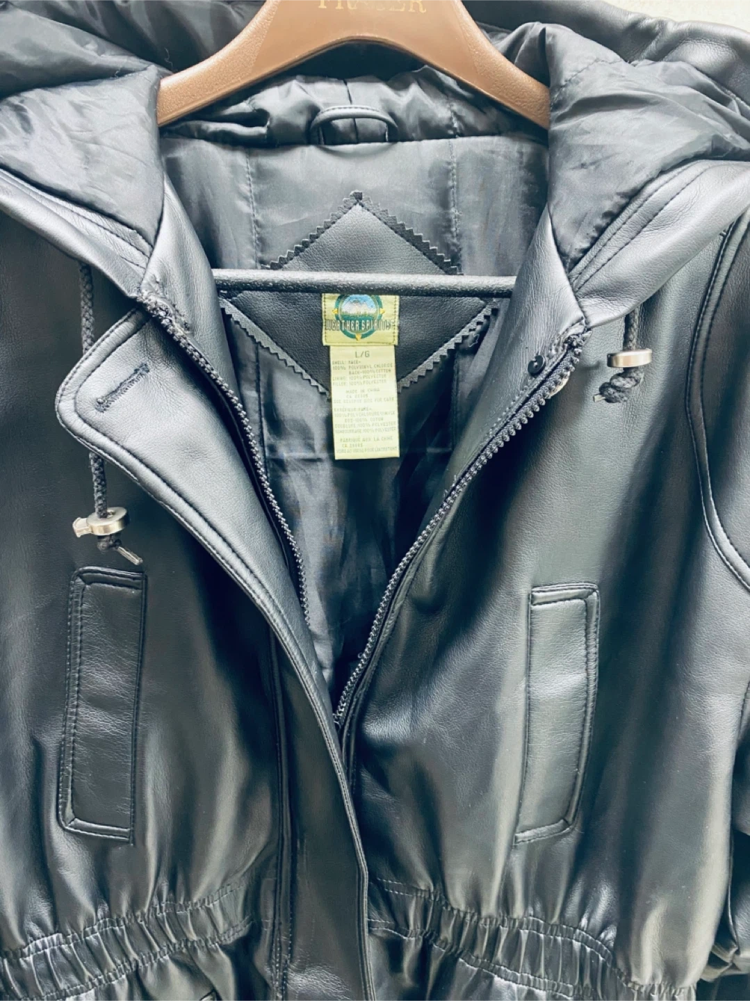 102Weather Spirits Black Faux Leather Hooded Jacket - L Excellent Condition 💯 $50 🇨🇦 Please follow my page ➡️ Thrift Happens YXE for more listings. Thanks! 🫶 POI