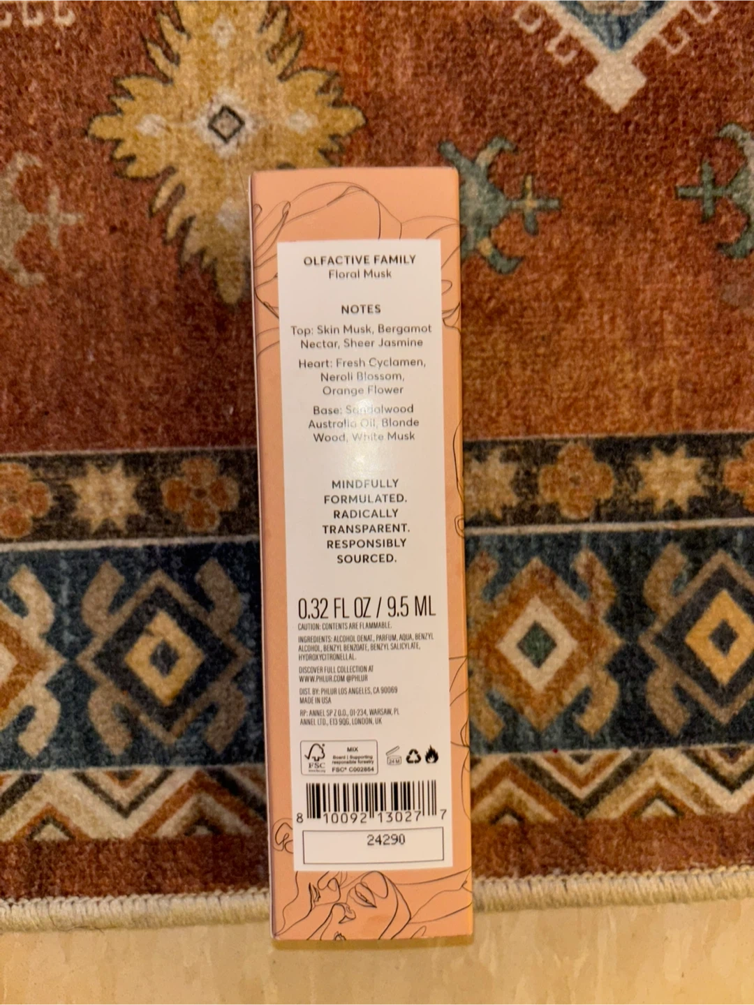 The Olfactive Family is Floral Musk with notes of Skin Musk, Bergamot Nectar, Sheer Jasmine, Fresh Cyclamen, Orange Flower, Sandalwood Australia Oil, Blonde Wood, and White Musk