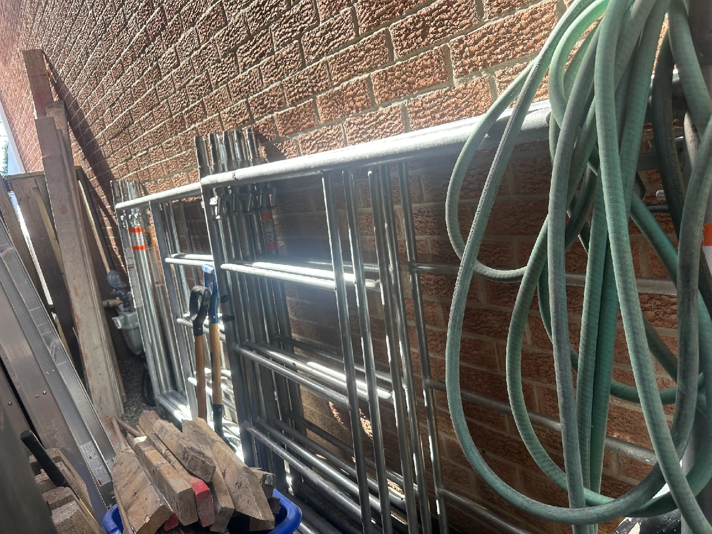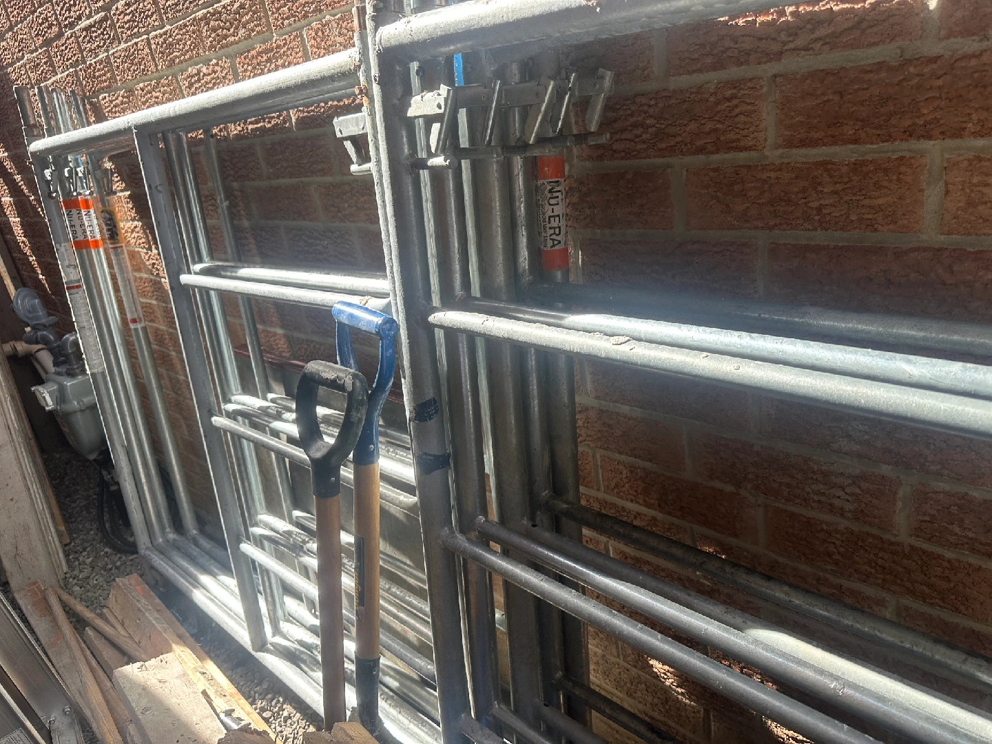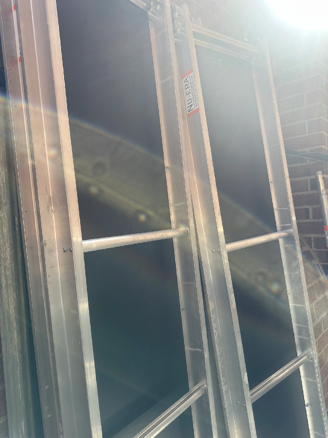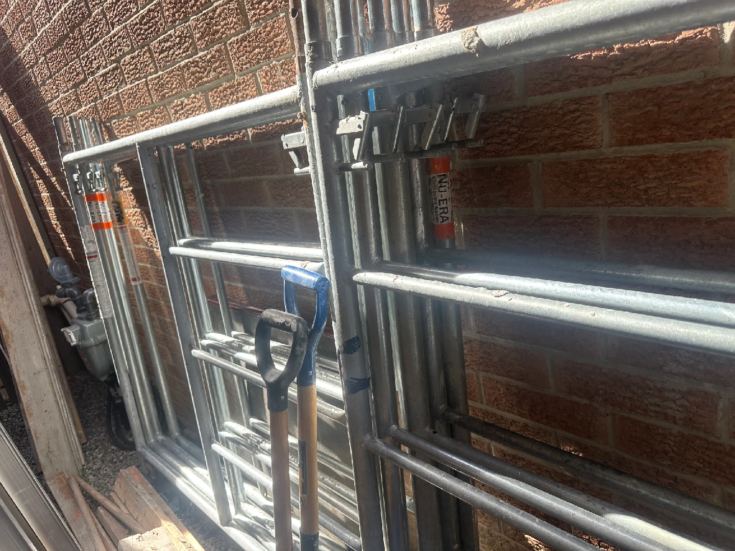 Selling NU-ERA scaffolding frames 10 5'x7', 10 cross braces, 5 platforms 7' long, all relevant hardware and 4 height adjustable feet and castors. The entire unit is like new, only ever used on 2 jobs and stands 25 ft high when all pieces are being utilized and assembled.