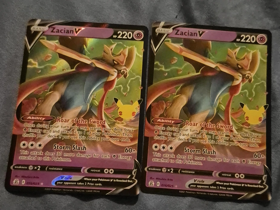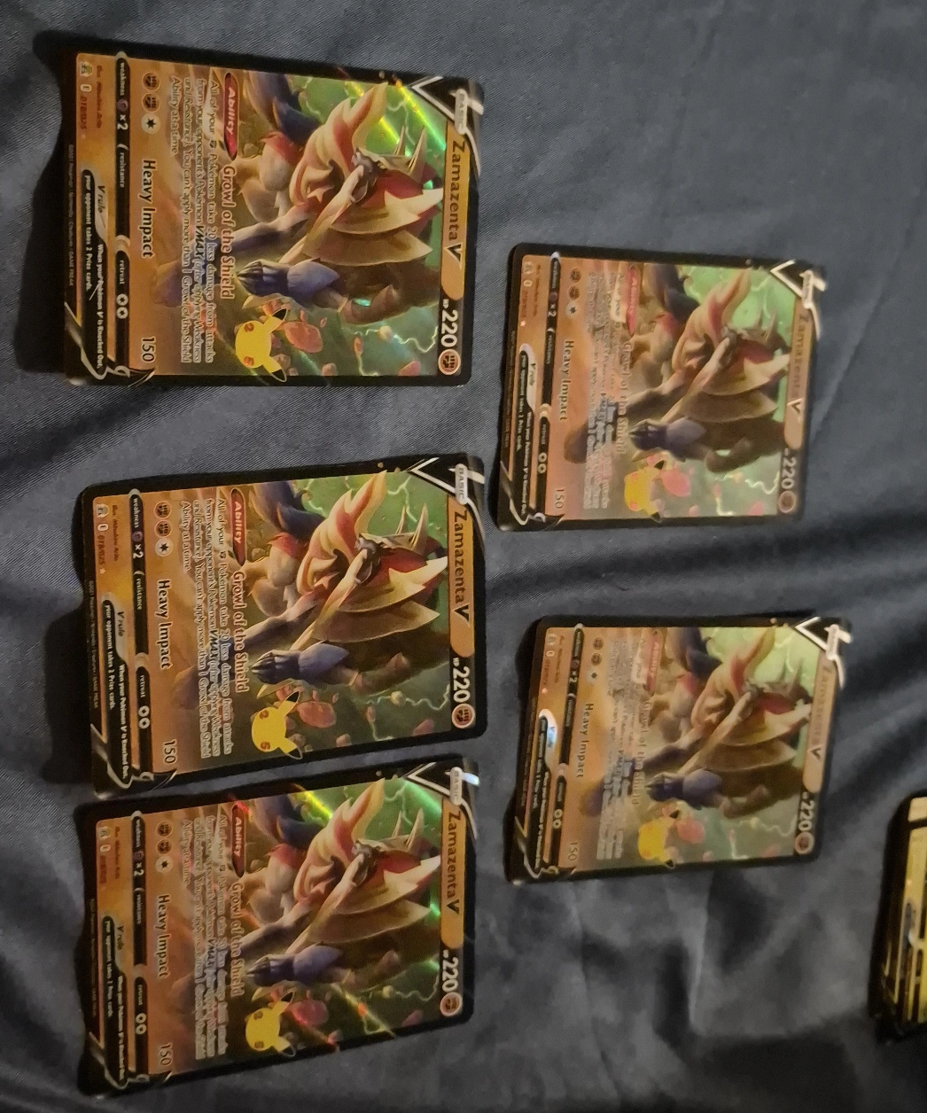 69Selling a collection of Pokemon cards including Ribombee, Surfing Pikachu V, Flying Pikachu V, Zamacenta V, and Zacian V