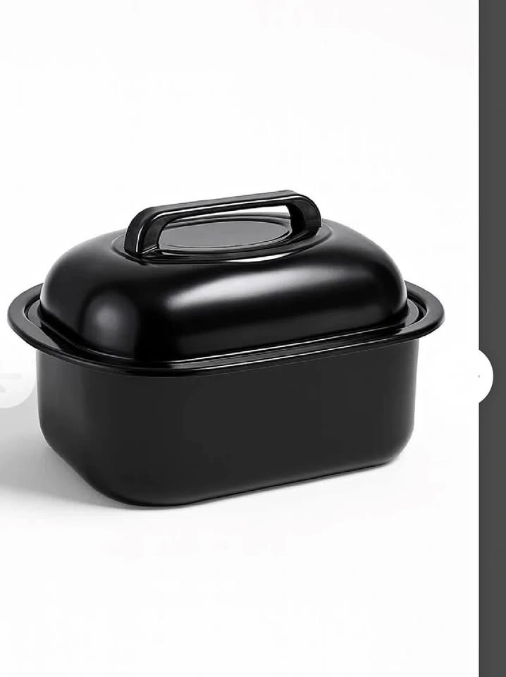 223New packed in a box. Price is firm. Large Black Enamel Turkey Roasting Pan w/ Domed Lid** Perfect for holiday meals! Durable steel, easy to clean, holds big birds & veggies. Brand new in box. π Size: 21.5" x 14.5" x 6.5" (pan) π₯ Oven-safe, stain-resistant, moisture-locking lid