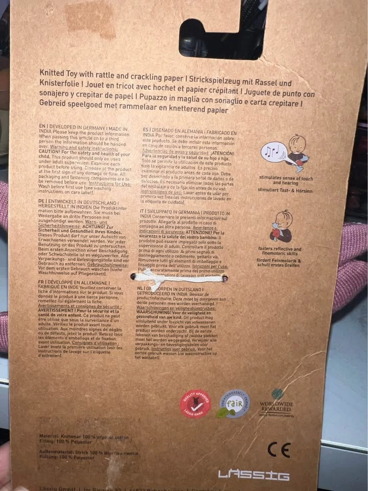 Lässig Baby Knitted Toy with Rattle Garden Dragonfly ORGANIC COTTON Stimulates sense of touch and hearing Fosters reflective and Finemotoric skills COLOUR: MAUVE ORGANIC COTTON KNITTED BABYTOY